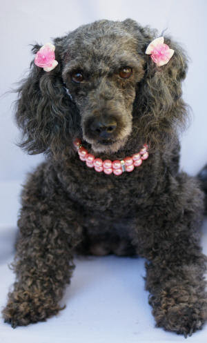 Sophie is a darling little girl who adores other dogs and makes herself quite at home with them. She is starting to show a cheeky personality and being playful on her foster carer's arrival home (while still keeping a little distance) so her carer is pleased at her progress. Sophie comes to her foster family members for a cuddle and, when you are sitting down, is there with the other dogs for her pat so is becoming very affectionate in comparison to the frightened little girl who first came to stay. Sophie loves raw puppy mince, chicken, doggy bone biscuits, chicken and vegetable loaf, has started eating normal dog biscuits and also enjoys a hide chew. She is learning to walk on a lead (which is a big step for her) and after a bit more practice will learn it is a lovely experience. Sophie was a breeding dog in her previous life and is learning what life is like as a pampered pooch with other doggy friends to play with. She will only be rehomed with another small friendly dog for company and to a home where she will have indoor access to her bed at all times. Sophie will make a wonderful addition to a Poodle friendly family with a quieter home and no small children, or a retired couple who have another dog for Sophie to cuddle up with. Most importantly. she needs someone who will understand and have patience with a dog who is just learning what being a dog in a family environment is all about.