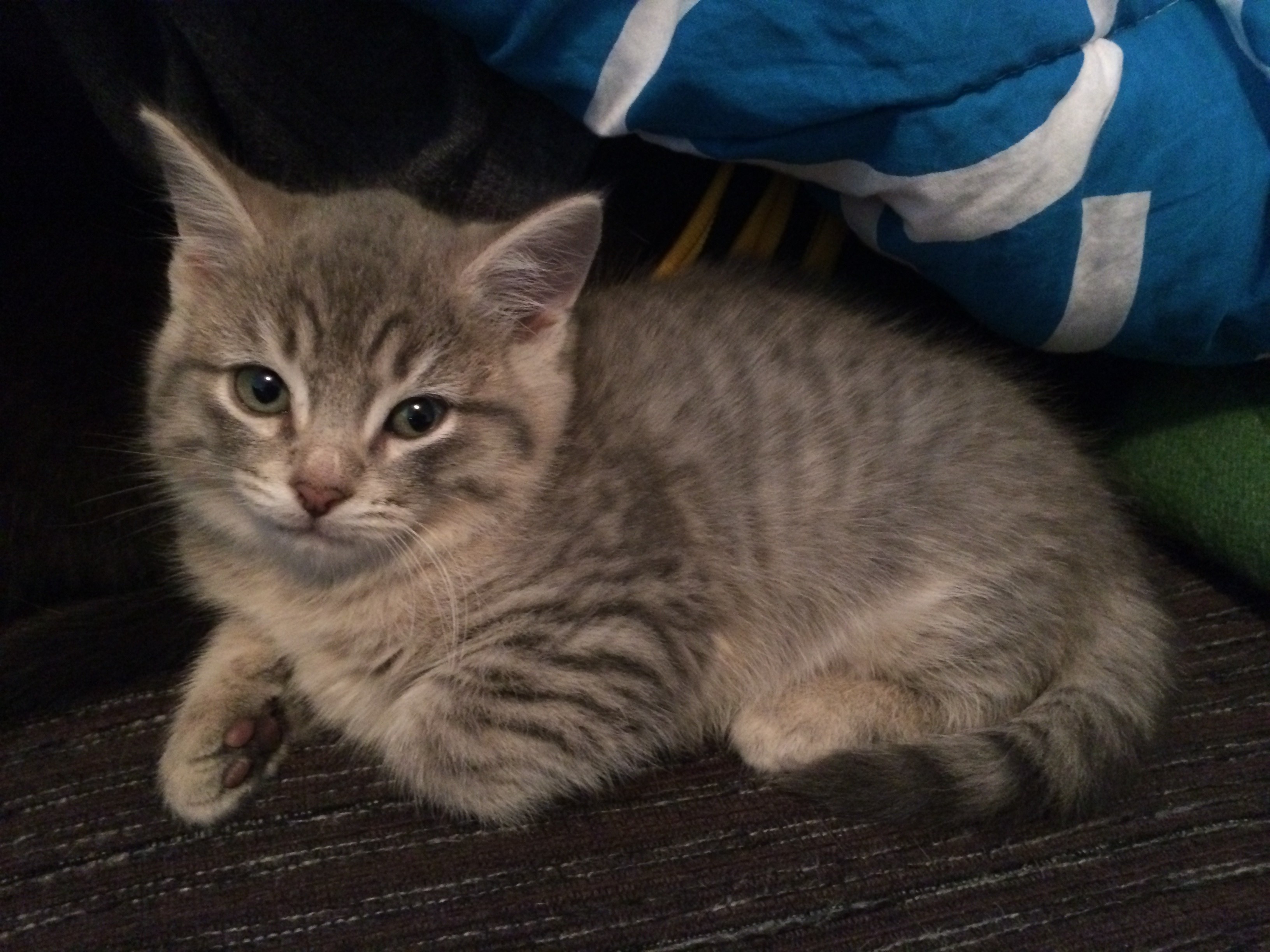G'day! I'm Harvey and I'm a cute, playful kitten with lots of energy and love to give. I enjoy playing with toys and my brothers, sleeping on a human or somewhere really comfy.