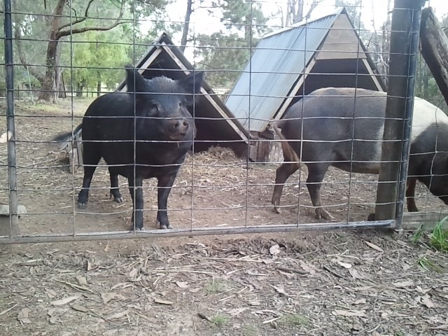 Sooty can be housed with others pigs but will need time to sort out the "pecking order". She will require a paddock or large enclosure with strong fencing (eg. diamond mesh) or electric fencing as she is very good at hopping through plain wire fences and going for walks.