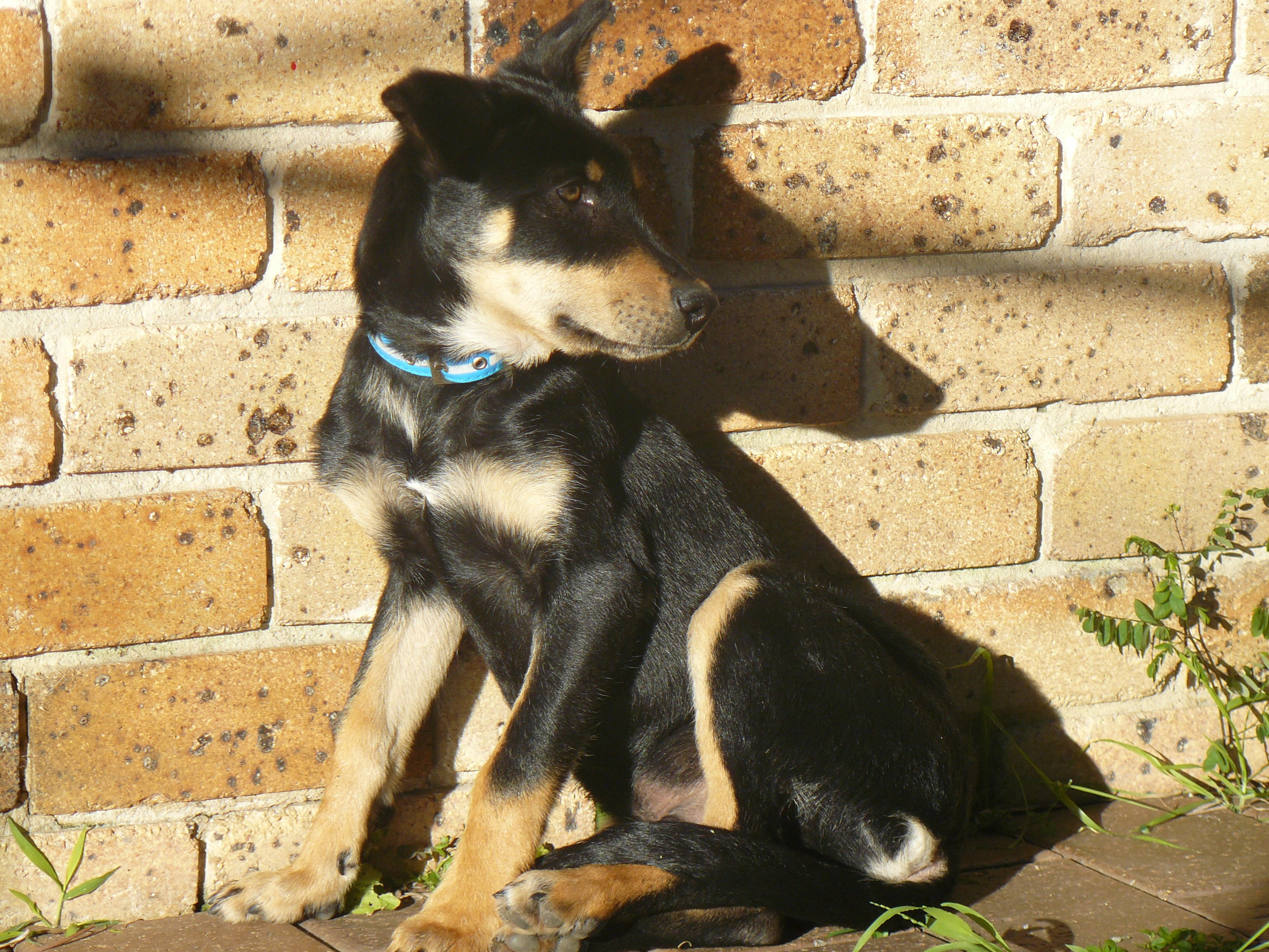 5 month old Travis is a playful, intelligent boy. He is full of beans and needs a lot of activity in his life - he will outgrow the puppy enthusiasm, but he will always be a kelpie! He will need daily exercise and ongoing training. He can also amuse himself with bones and toys. He is house trained, and also happy as an outside dog.