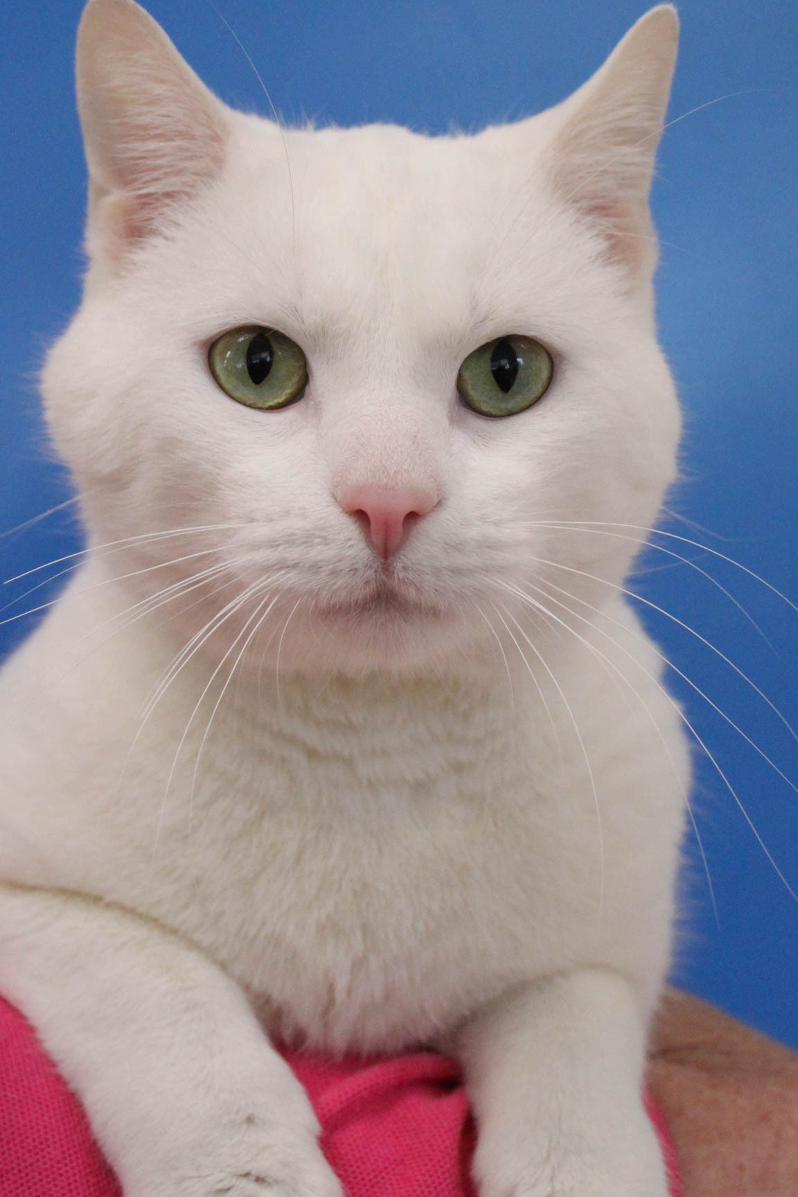 Meet the handsome Jason pure white with stunning green eyes! Could you be his forever friend?Jason is a sweet boy. He is very affectionate once he knows you and loves attention. A nice warm lap to lay on in the evenings would be ideal for Jason!He would love a family home with children. Please bring the whole family in to meet Jason to see if you can all be friends!Jason will need to be kept INDOORS due to his light pigmentation and his quiet nature. This will also prevent the chance of getting skin cancer.A large scratching post places to laze about the house and some toys will all help keep him amused and comfortable when needing to be home alone.Due to his wispy coat he will need a weekly brush to keep him looking handsome.If you can provide a lovely home for Jason please come in and meet this lovely boy.*INDOORS ONLY