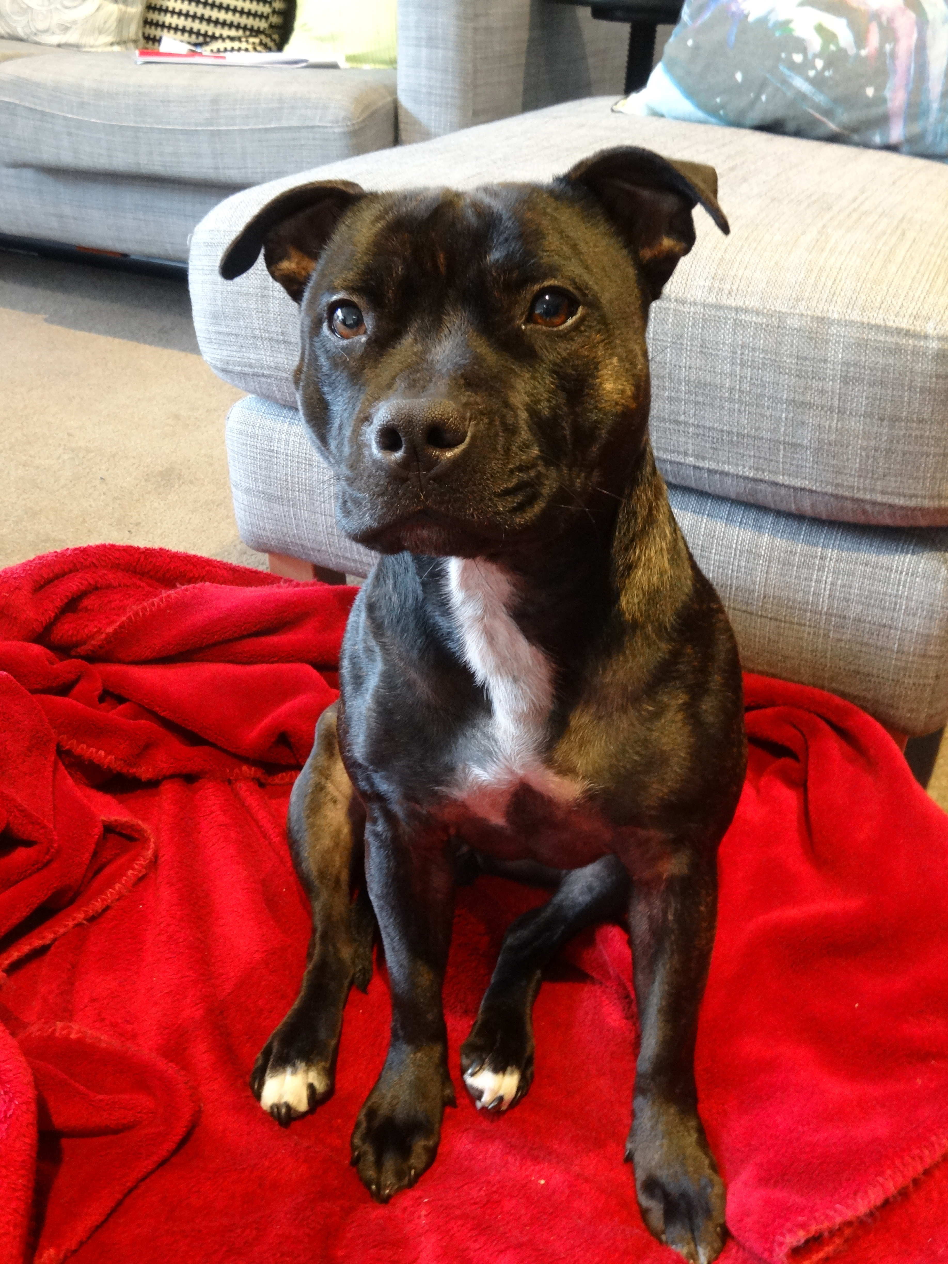 Hi, my name is Charly and I am a beautiful black brindle girl of 2 yrs of age. \ Due to family circumstances my family have had to make the heartbreaking decision to surrender me.
