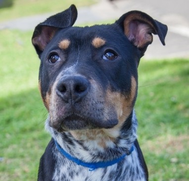 Ziggy is a handsome Cattle and Staffy mix youngster who loves cuddles and licky kisses. A well-mannered boy, Ziggy knows sit and walks well on leash, and will do anything for a tasty treat! Ziggy would love to join a fun-filled family with plenty of walks and outings. Despite his oversize paws, Ziggy is on the small-side of medium, and would enjoy playtime at the local dog park (or cafe's!) as he is just a social butterfly! Ziggy loves to play around with other dogs, so a furry friend at home to show him the ropes would be ideal