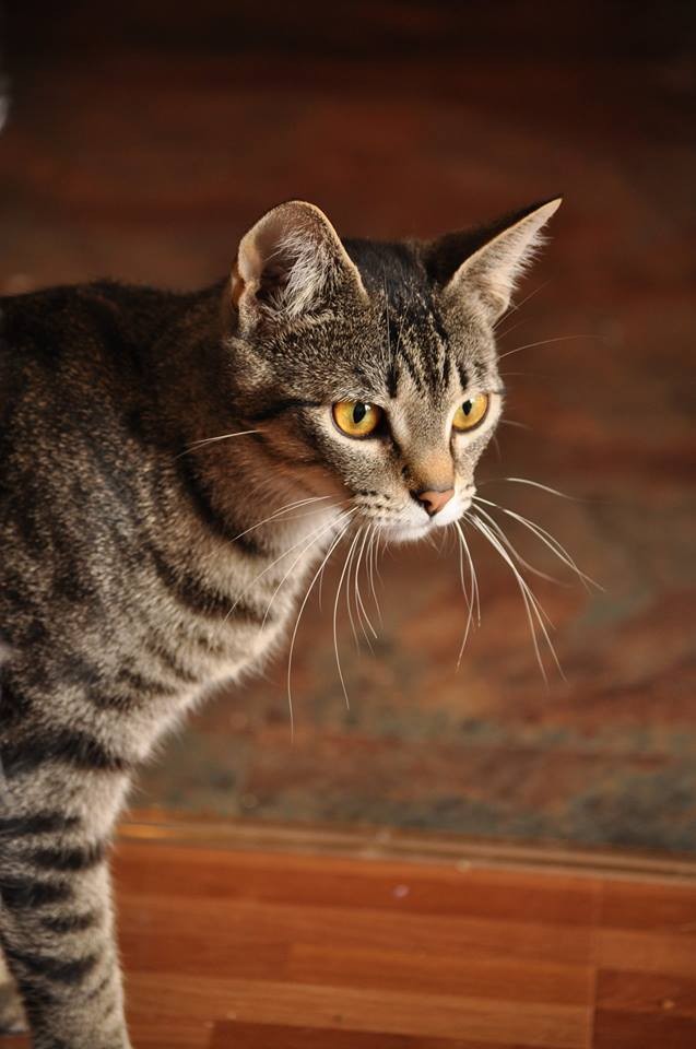 Tabitha the tabby! what a character, this gorgeous girl Loves to play and loves her food. Tabitha enjoys to climb in the cupboards and explore. So much fun to watch, Tabitha is great with other cats and with dogs, she is not a fan of human cuddles but shes always around and sleeping on the end of the bed or couch she is a great companion and fantastic mouser, Tabitha would be the perfect cat in a work shop, shed or stables.