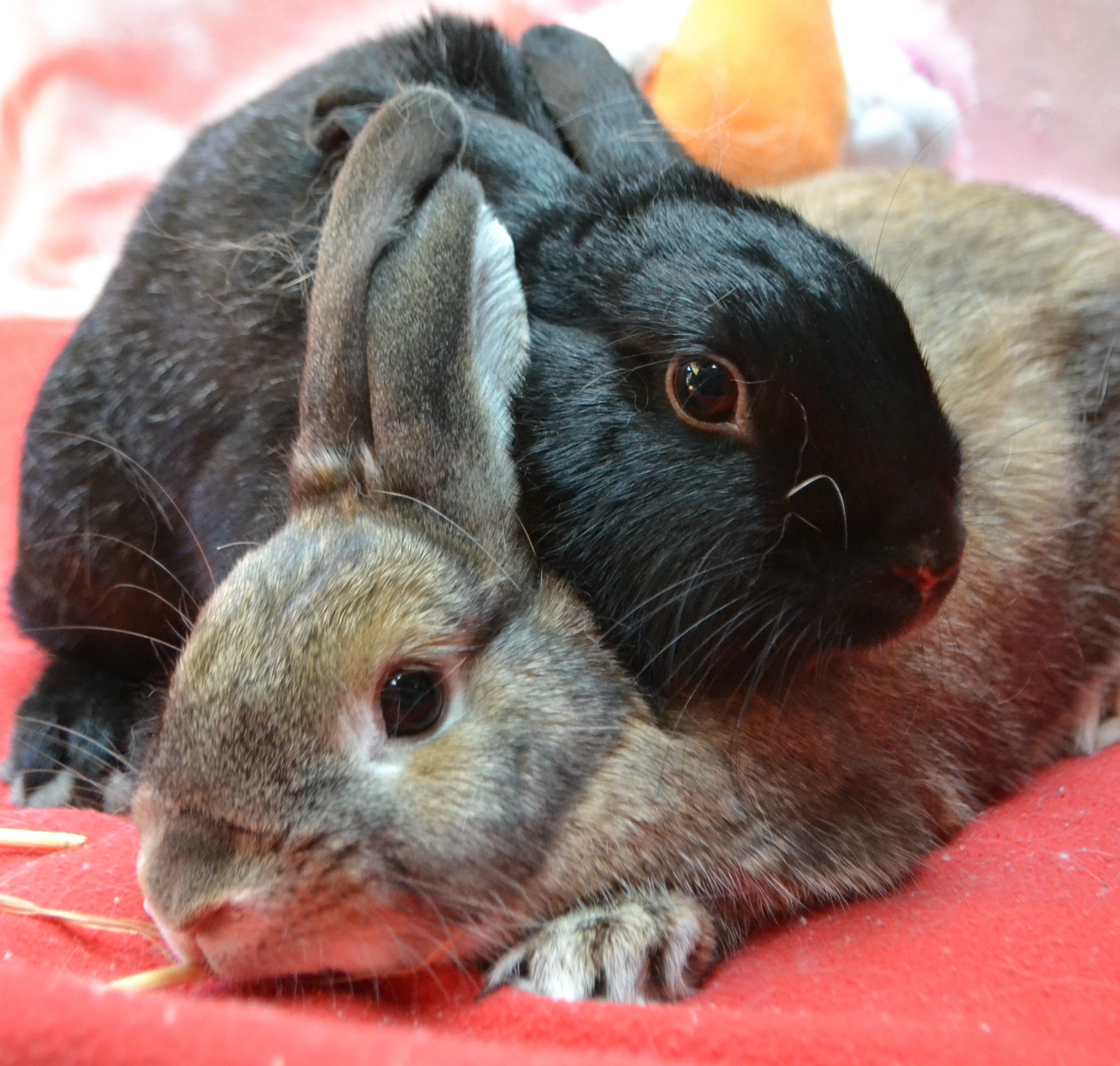Rhett and Carmen are brother and sister and were born at the orphanage, when their mother Coco was surrendered pregnant. \ Both buns are curious but a bit shy and would benefit from a quiet home where they can explore and grow into beautiful family members. Carmen looks just like her mother Coco.