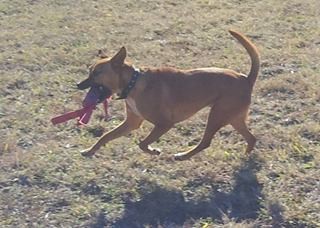 This little dynamo is RENO and yes! he loves to race around with his favourite toy and run run RUN !!