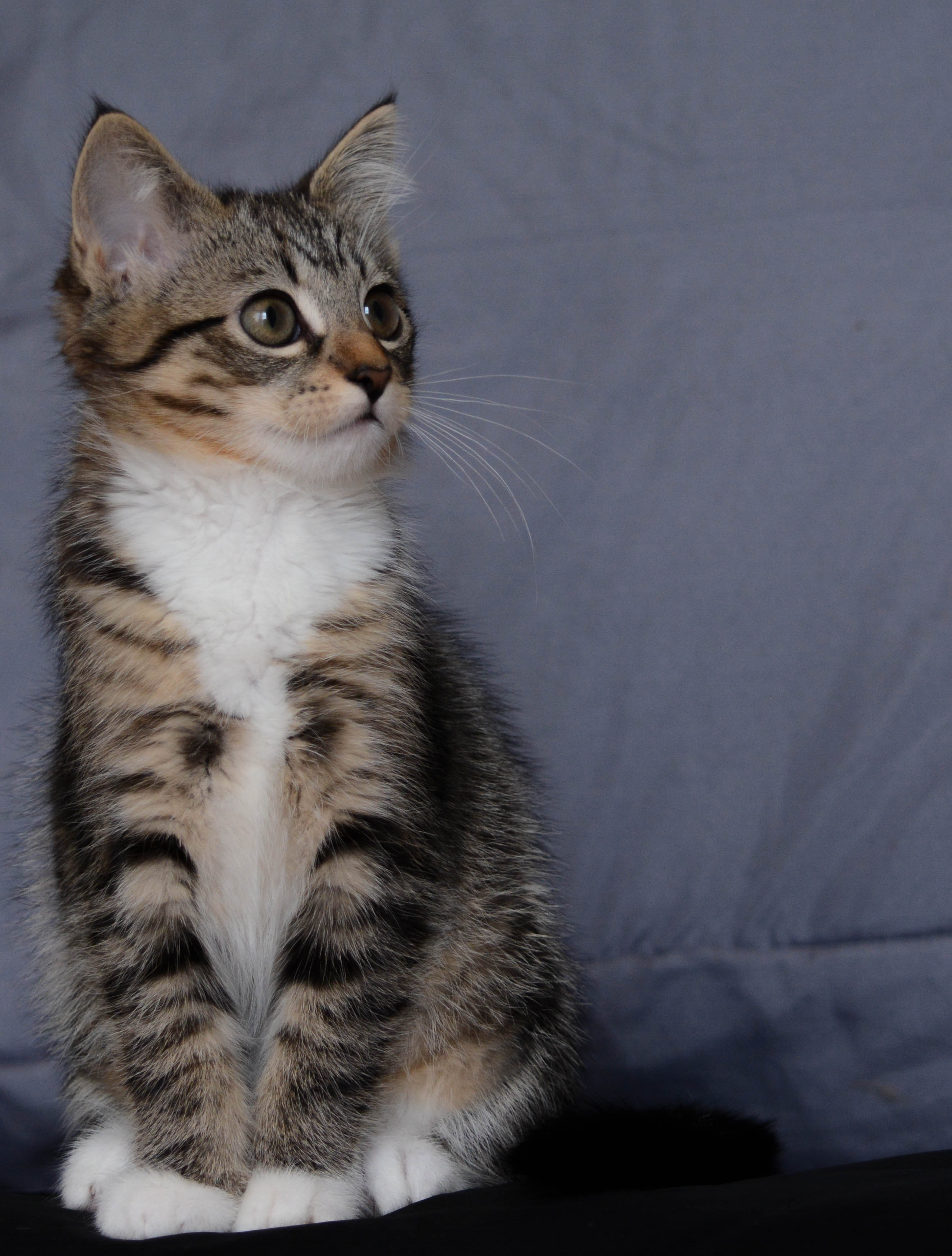 This kitten spends the vast majority of her time playing but when she does get tired she will want to curl up on your lap. She isn't shy about this so rest assured you will be informed when she wants your attention. \ She is exceptionally social.