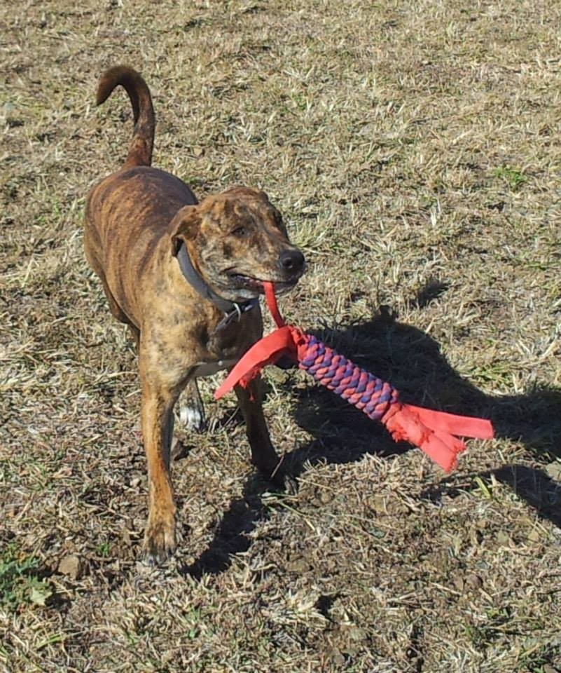 She travels without fuss in the car. She loves a hug once she feels safe and can relax with you (rather than burning around with a staffy-like snort and tumble), and when she's finished playing about will choose to lie quietly beside you. She loves adventure, but is happy to chil out when it's not time to party.