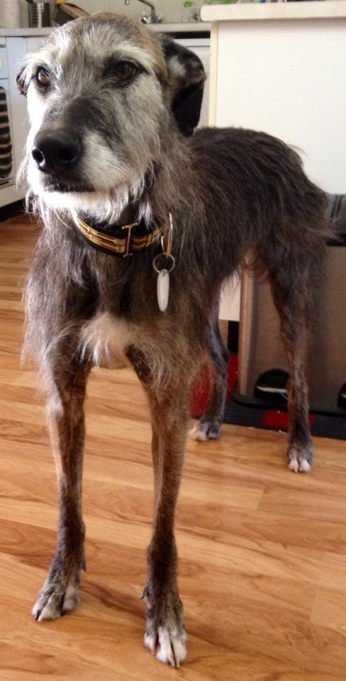 When is a greyhound not quite a greyhound? When she is a greyhound/wolfhound cross! ? Gorgeous Libby is a recent save from Canberra pound and what a wonderful save it is! As crosses go, she's pretty perfect; she is smallish (about the same size as an average female grey) and has all of those greyhound qualities we know and love (being lazy, roaching, beautiful manners, affectionate) but has the gorgeous fuzzy face of a wolfhound and because she's a cross won't ever need a muzzle. Libby is house-trained, sleeps quietly through the night, walks beautifully on lead and loves dogs, kids and everyone she meets. We think Libby is particularly suited to a home with children - she's so lovely and gentle. \ Libby has been known to jump fences in her previous life - so high, secure fences or better still, an at-home-all-day owner would be just what Libby needs.