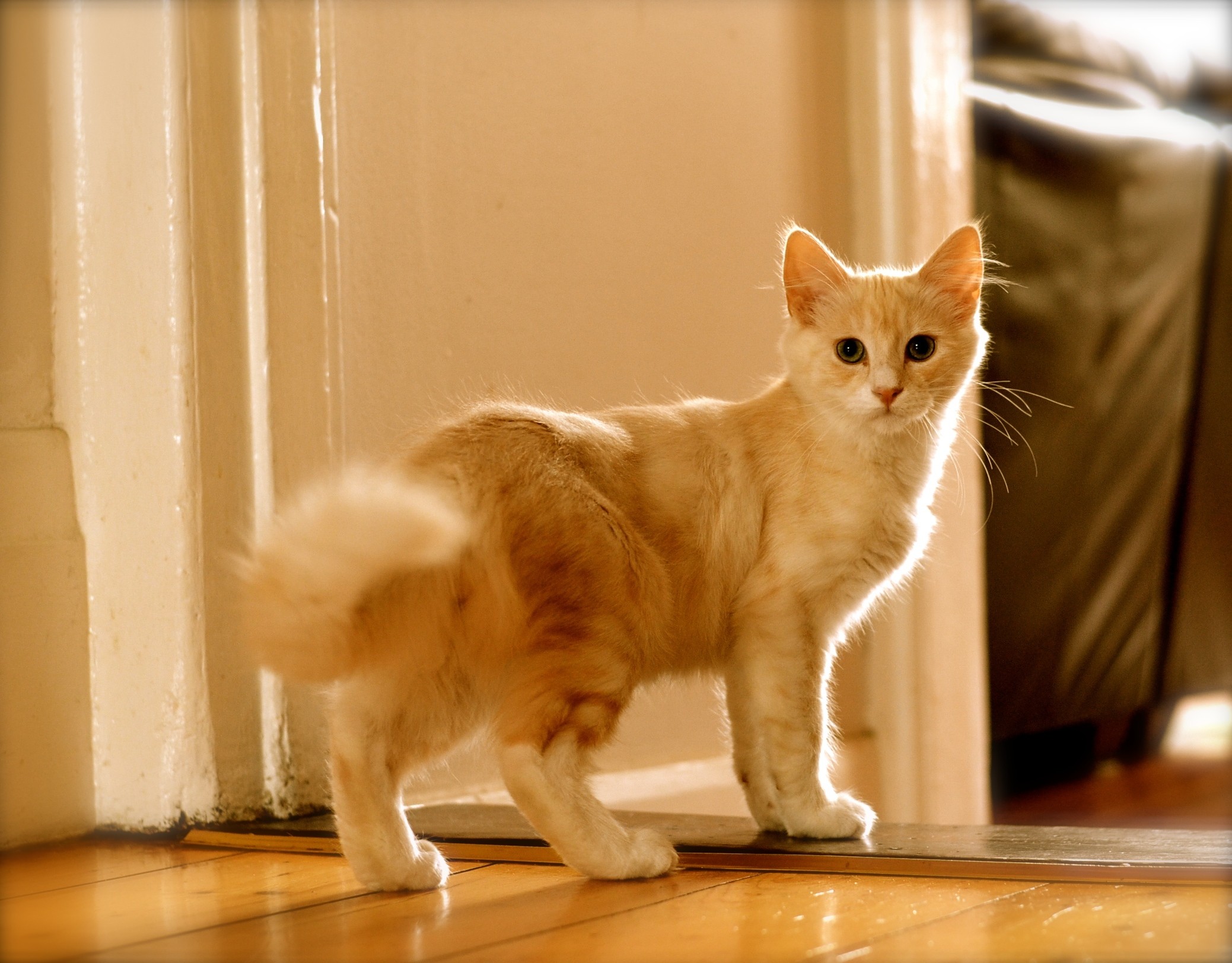 wrapping himself around his humans legs