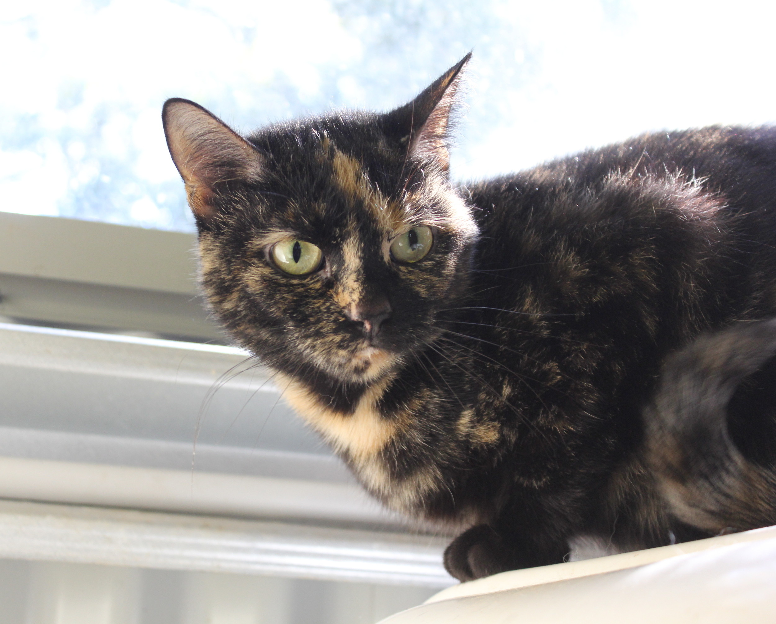 Harriet is a delightful dark tortie girl with beautiful markings. She is a very friendly cat and likes to help you with all your chores especially at meal times. A typical tortie she likes to be in charge but lives happily with other cats. An ideal pet for all types of households