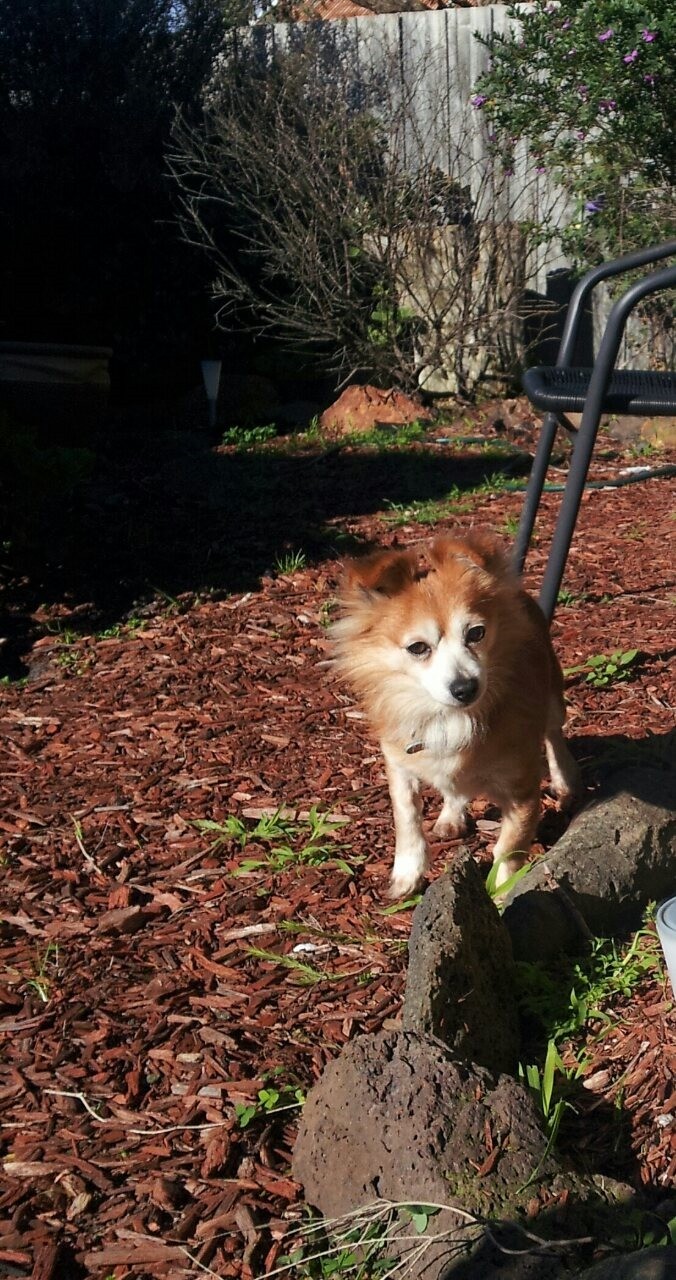 Gus is such a beautiful little fella. He is so well mannered, he uses the doggy door, rain hail sleet or snow he goes outside to the toilet, let's himself out at night even ! He's a good eater, great with the other dogs, obedient, he'd very clever, adores Graham follows him everywhere. He's perfect, really tough too, so funny doesn't take any creep from these boys. Sits at the kitchen door for his Kangaroo stick. Goes to bed in his little basket when bed time. Gives kisses and cuddles and really independent. Oh we love him.