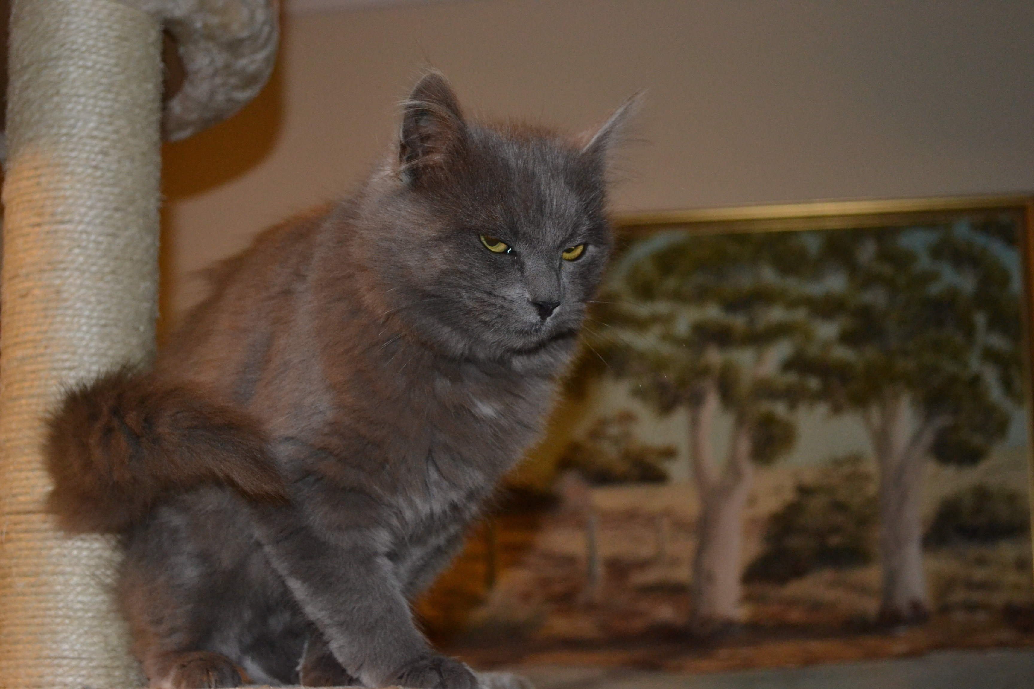 Demi is a stunning blue medium hair girl, with a great personality, she very affectionate, smoochy girl that loves her cuddles. Demi came into care as a stray which no one claimed. She is socialised with other cats and dogs and will make a wonderful addition to any family.