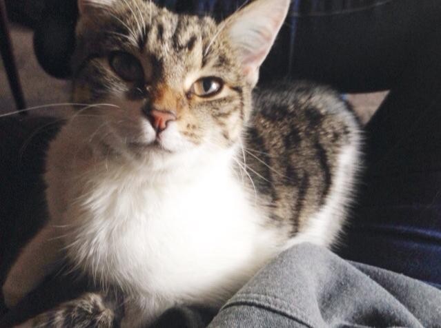 Introducing, Jasmine a 7 month old tabby! What a gorgeous creature this little girl is! Jasmine is very smoochy and very purrrrrry! While she is very loving, Jasmine can frighten quite easily so small children might not be her ideal match. She is very gentle and loves playing with other kitties and toys. She passes time by sitting at the window watching the world outside. Jasmine loves to cuddle up on the couch and watch TV with whoever will give her the best head scratch! If you’re looking for the perfect lap-cat, you’ve found her!