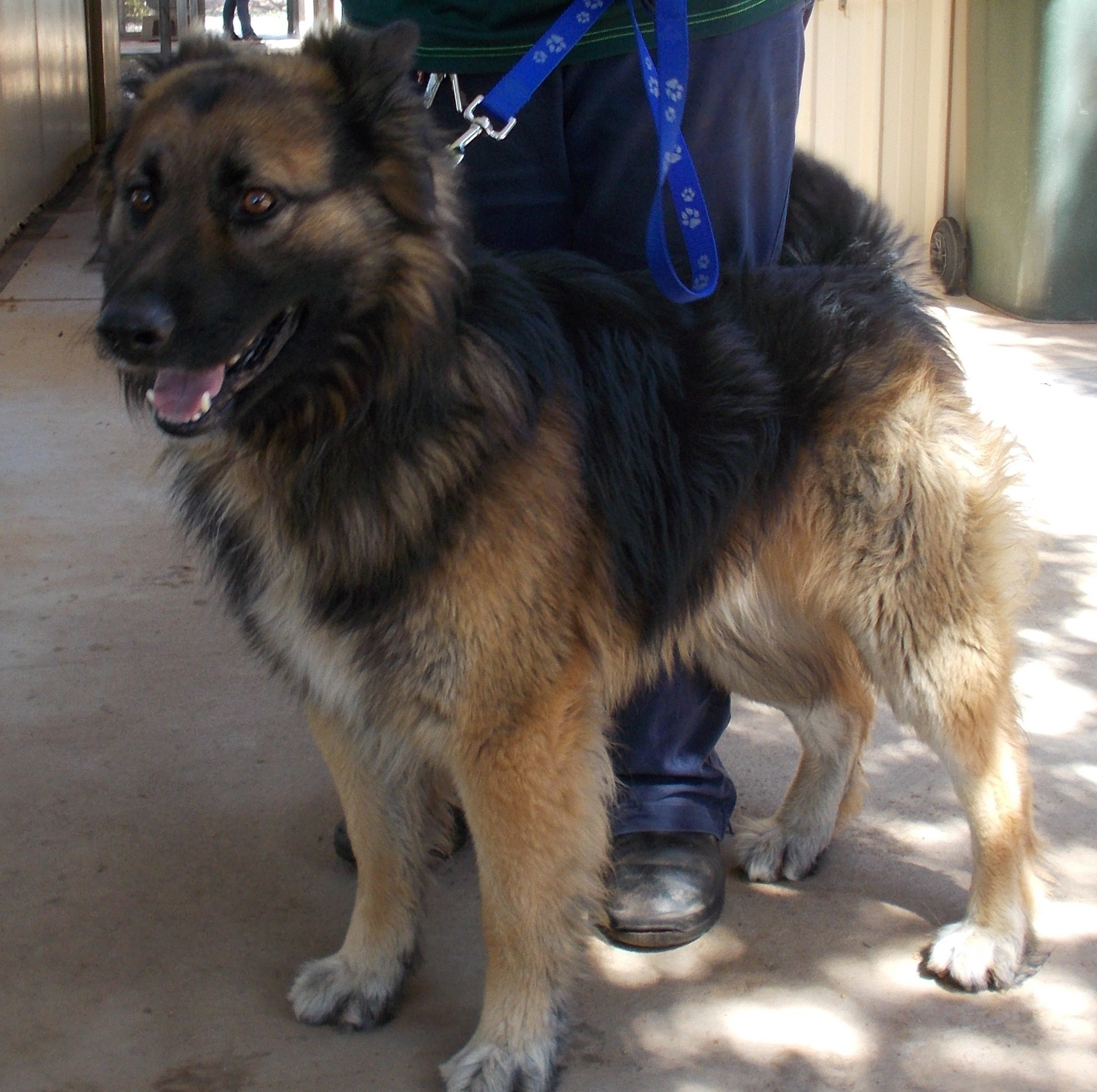 K is a big, handsome boy who was surrendered to us as his owners were moving. \ He is very strong and energetic and would need someone who is willing to put in the time to give him some further basic obedience training. He does however sit for his food and in the absence of the excitement of other dogs, can be quite charming.