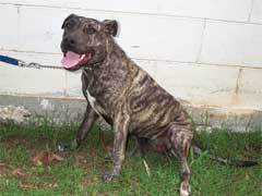 This lovely brindle bitch just loves children. . . To play with, not to eat!