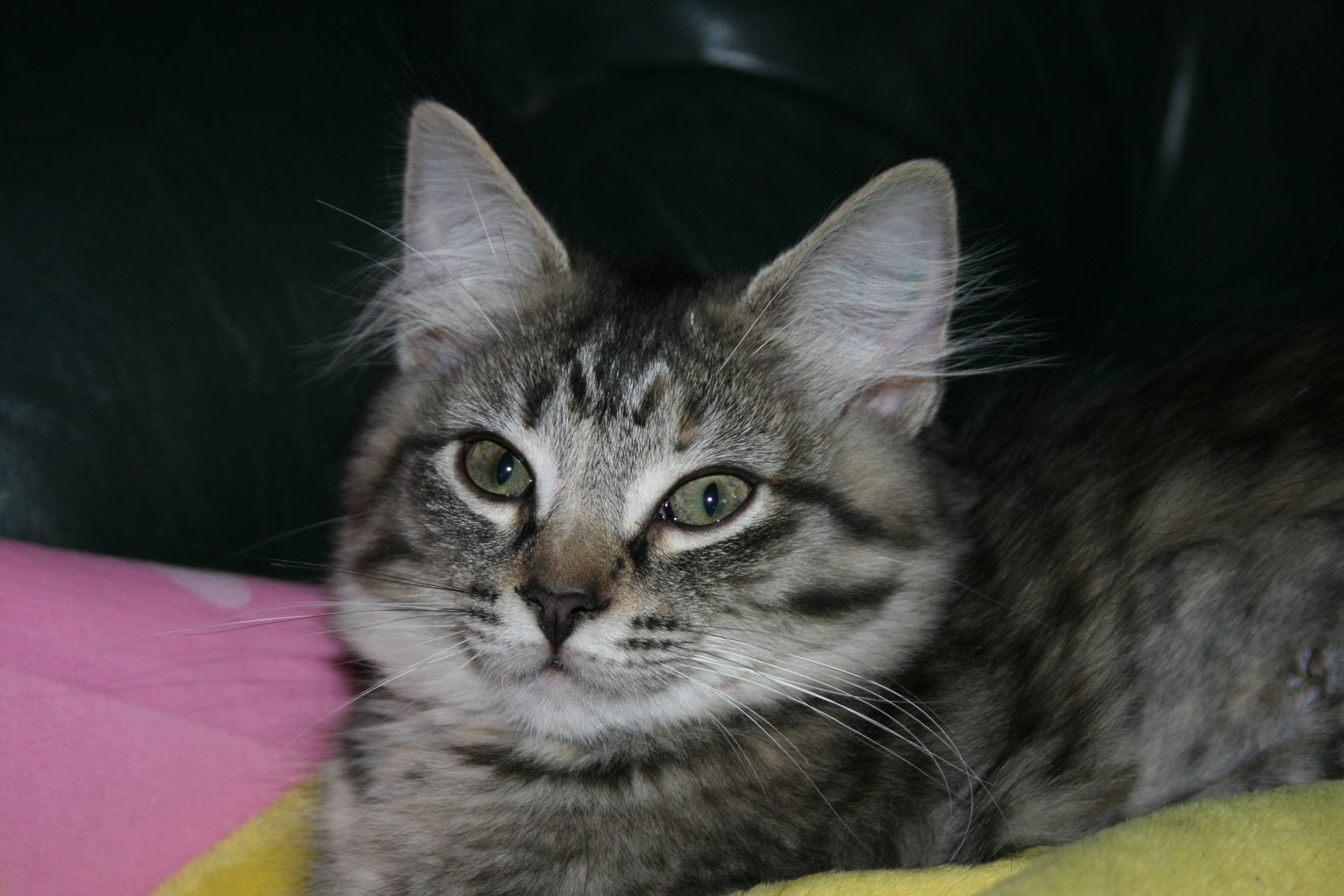 Charcoal is a very friendly little girl, having been handled by children and adults since she was 2 days old. She is very confident around dogs, as she has been raised with a Bull Mastiff, Kelpies, and a Jack Russell. She will happily cuddle up with the dogs at night in front of the fire. Charcoal is a very energetic, happy little kitten. She loves to race around with her brothers and sisters, but also loves to cuddle up with the kids. Her favourite sleeping spot is on the bed in front of the window, in the sun. She is a curious little girl, who loves to watch what is going on outside.