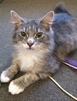 "Sebastian" Long-haired grey and white 5 month old male. Will come vaccinated, microchipped, desexed and treated for worms/fleas. He is extremely affectionate, playful and loves lots of attention. He gets along well with other cats and loves our Rottweiler (I would say he would get along with any dogs that get along with cats). Once he is use to you and his surroundings he is confident and not much scares him.
