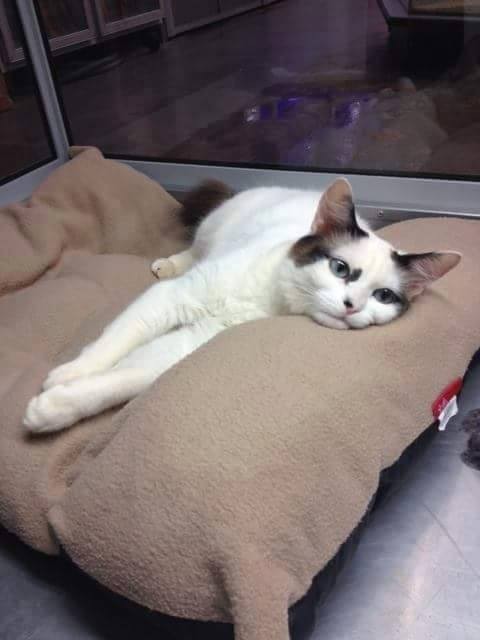 Blossom is gorgeous ! she was rescued from the pound with her litter of kittens about a week old. She is a gorgeous cat with blue eyes and a loving temperament . Blossom also has an unusual half tail its very sweet!