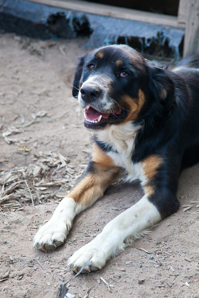 Reece2 is probably a Bernese Mountain Dog cross Border Collie. He is a medium to large young dog who is extremely laid back with a great nature. He is gentle with small kids and loves being round people. He was surrendered as they did not realise how big he is going to be. He is now approximately 18 months old. He needs to go to a good family home who will commit to taking him to training. We are very fussy about the type of home he goes to due to his beautiful nature. He often watches the others play and always comes up for a cuddle.