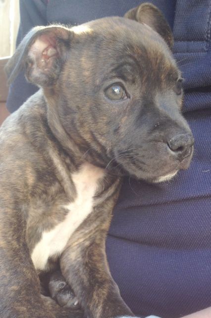 Clover is a tiny and sweet 10 week old, female English Staffy x puppy. Clover is a delicate pup and she has the softest light brindle fur with a sweet and soft personality to match. Clover loves to sit by your side and watch the action rather than taking part in the action herself. She thinks of herself as a human and will seek out human company and watch her littermates and doggy friends play from the comfort of the couch.