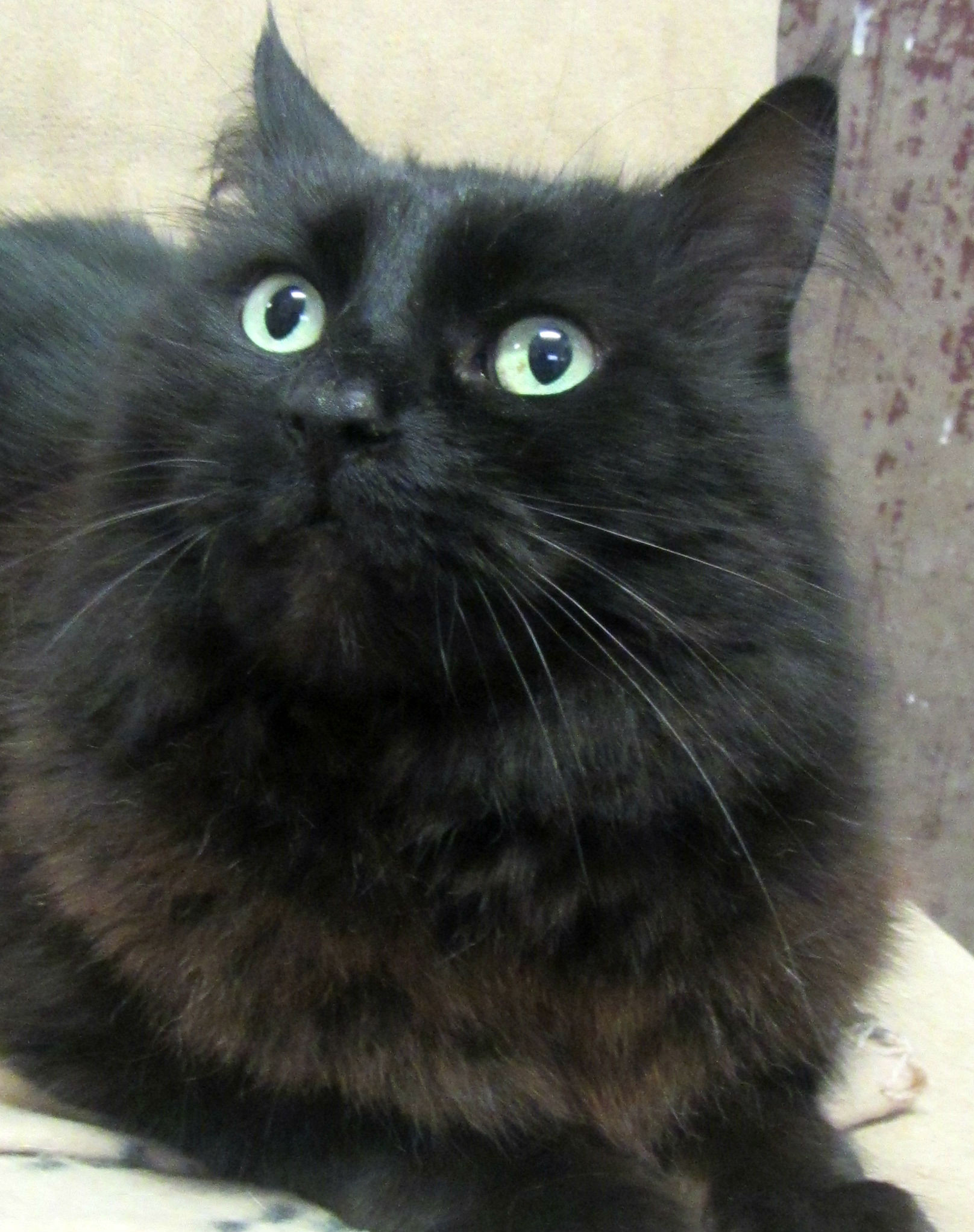 This black beauty is just too cute and she is such a precious lady. She adores humans and loves to be patted by anyone who is willing to give her some attention. She has the most gorgeous flowing black coat which is oh so pretty to admire. The way she looks up at you would melt even the hardest of hearts. Trinity is past that crazy kitten stage but still and will happily curl up with you when you need it or find her own spot around the house to lie about in. She is used to being indoors and around children and will make the most lovely new family pet. If you think she sounds like your kind of kitty then don’t wait another minute and come to meet her!