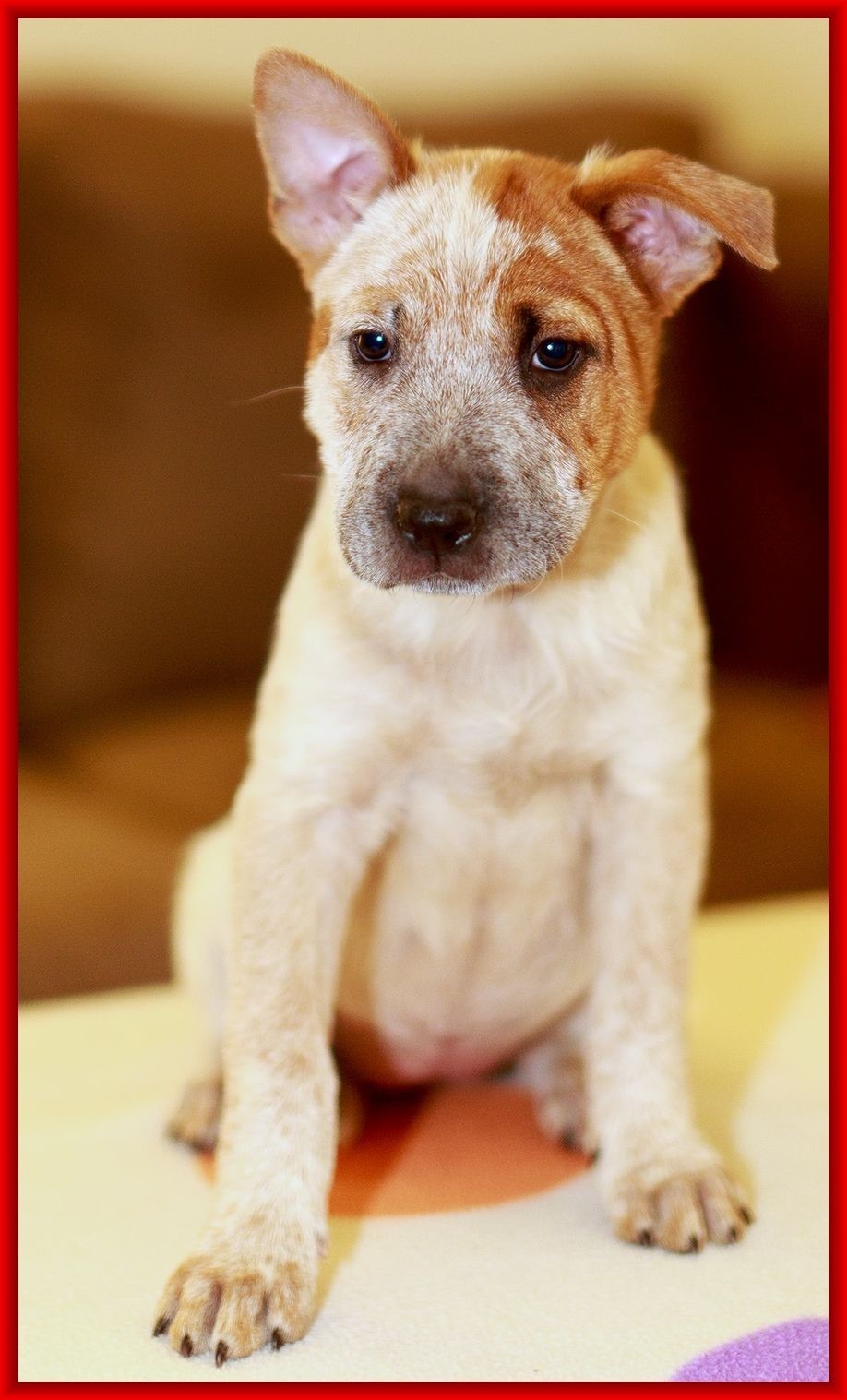 Elsa is an affectionate 12 week old, female Shar-pei x Cattle dog puppy. Elsa is a very loving little pup - she adores human attention and will be your shadow all day. When her brother and sister are asleep she will follow her foster mum into the office and supervise her work. She likes to be an office assistant by stealing all the pens and erasers. Elsa tries to make friends with everyone especially older dogs as she just wants them to play. When she’s tired she curls up in a ball to sleep on your feet.