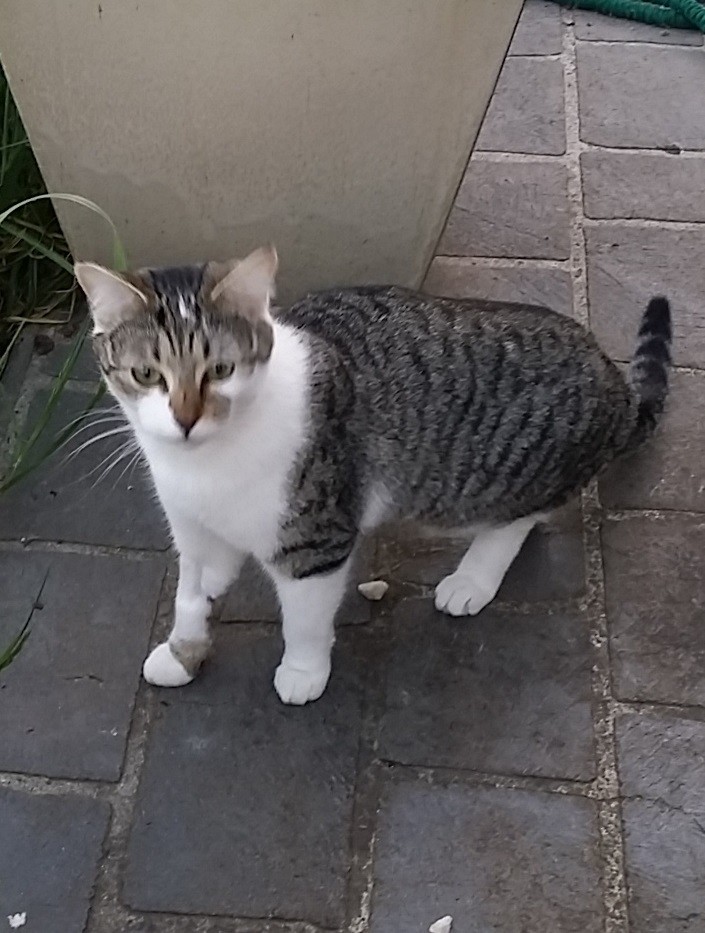 Peggy Sue is a year old darkish tabby she is quite affectionate and likes coming up for pats and scratches especially round her neck and head!