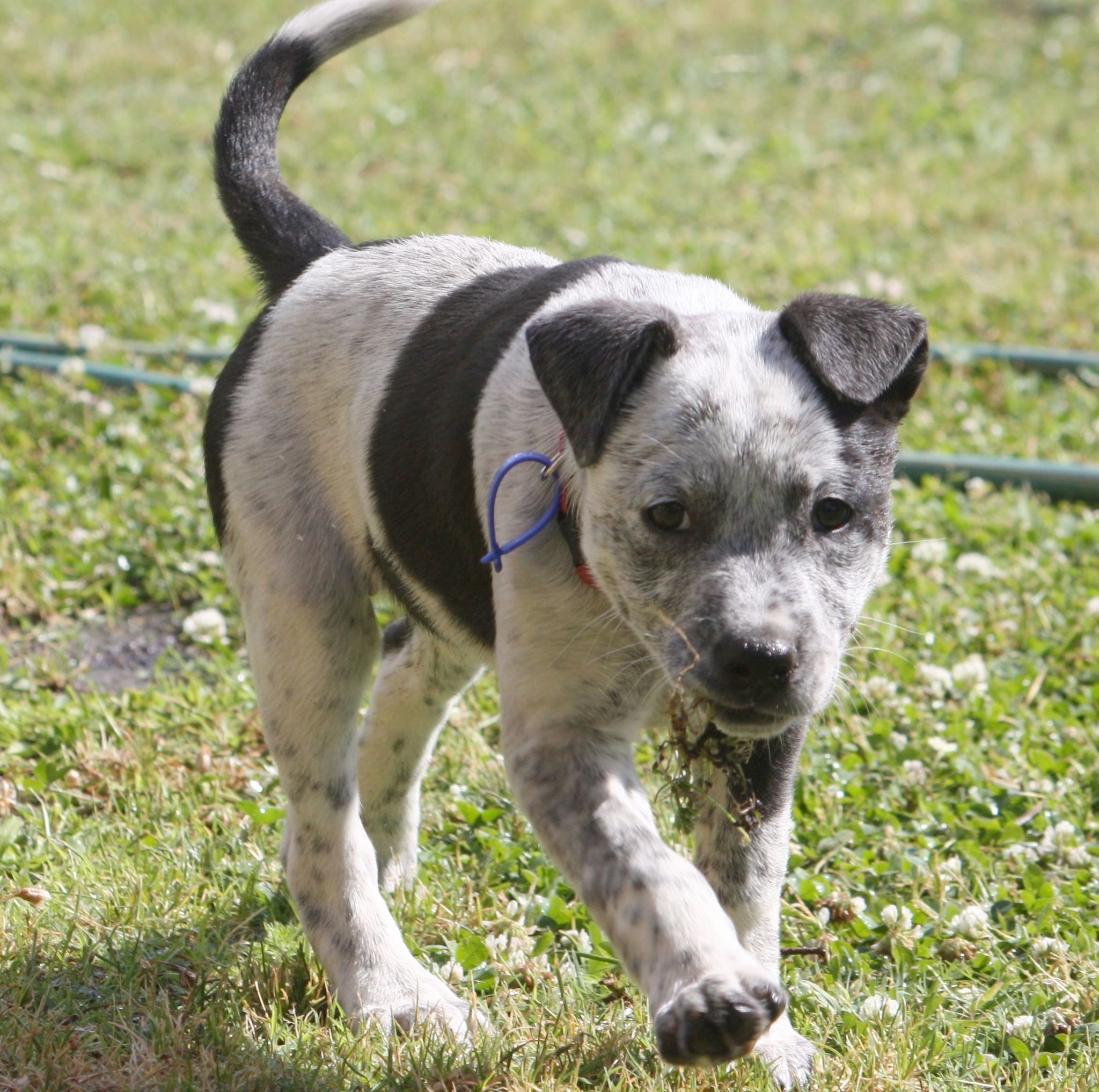 Leelu is a gorgeous 8 week old, female Cattle dog x Border Collie puppy. Leelu has a great time trying to carry toys around the house, even the ones that are almost as big as her. Leelu adores humans of all sizes – she loves children and will happily play all day. Leelu is a typical puppy – she has a soft spot for shoes (don’t all girls?) and she loves to nibble your toes. Leelu loves to snuggle and after a hard day of play she will curl up on your lap for a long doze.
