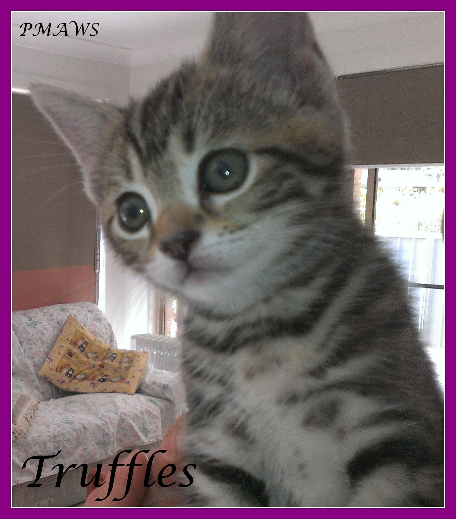 Truffles is still too young to be desexed, so won't be able to be rehomed until then, but expressions of interest are very welcome in this beautiful little girl.