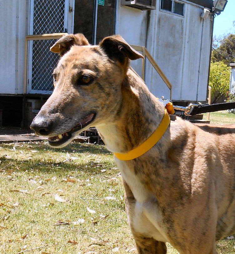 Despite having the racing name “Big Penske”, Duo is quite small for a male (his brother Uni is even finer). Duo is an easy dog to live with, as long as you don’t mind having a shadow – he’ll follow you from room to room and flop down on the floor to keep you company. He is a very affectionate boy and loves nothing more than putting his head in your lap for an ear rub (makes working on the computer a bit difficult at times!). Duo will stay outside by himself, but like most Greyhounds, does prefer to be indoors when he can, and he doesn’t enjoy really hot weather. He travels well in the car & is easy to walk on the lead. Duo loves his food & will eat everything offered to him. He would suit a range of home situations, from singles to families, as long as he got plenty of cuddles.
