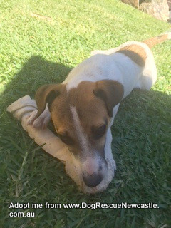 Abbie is a cute little female, Foxy x (more Jack Russell size), 8 months old. She is house trained. She is sweet and affectionate and love cuddles. She loves to play with the other three dogs here and is super dooper friendly with them. Abbie doesn't take any interest in our cat and just seems to mind her own business when she is around.