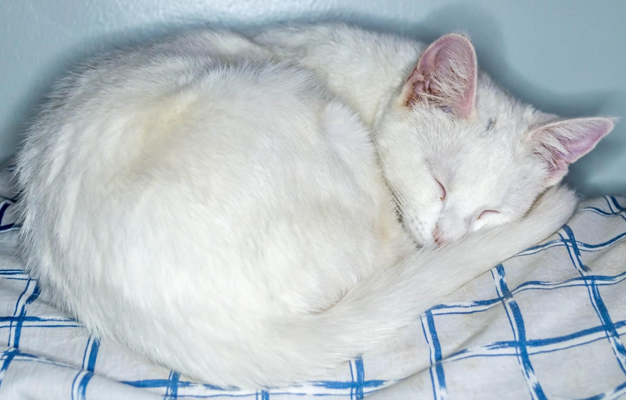 A great laid-back girl who can be found curled up on the back of the lounge most days, Snowflake is litter trained and is happy indoors, although she currently has access outside through a cat door. She will need monitoring in the summer months as she may be susceptible to sunburn and will require sunscreen on her nose and ears for protection. Snowflake is calm, gentle and loving and would make a wonderful family pet.