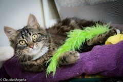 Jake is a very playful and happy little cat – he can amuse himself for hours with a toy or playing with his foster mates. He is very affectionate and loves a stroke and cuddle. Although he is a little shy at first once you gain his trust he is the most delightful companion.