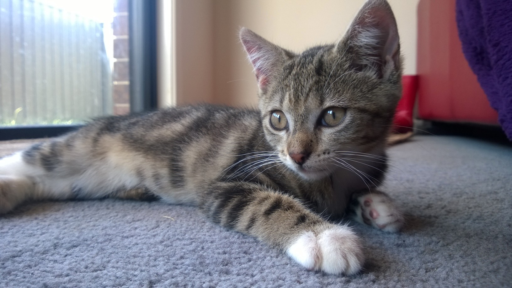 When I’ve had enough of playtime I will sometimes come cuddle up to the humans with a loud purr, or I will stay close by but out of sight – right underneath the couch that they are sitting on! During games of hide and seek I often choose to hide under the couch, and even though I’ve grown a lot I can still fit in the tiny space under the couch, just out of arms reach. It’s also a good spot to play with toys, but I’m struggling to pounce on them these days.