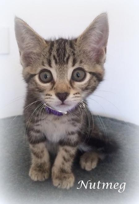 Nutmeg is a lovely, easy going kitten who gets on well with other cats and dogs. She would make a wonderful addition to anyone who is looking to add a 'furever friend' to their family. Nutmeg's mummy Suzie (who is also looking for a home to call her own) came to us heavily pregnant and gave birth to five beautiful little babies - Nutmeg, Midnight, Marbles, Leia and Chocolate.