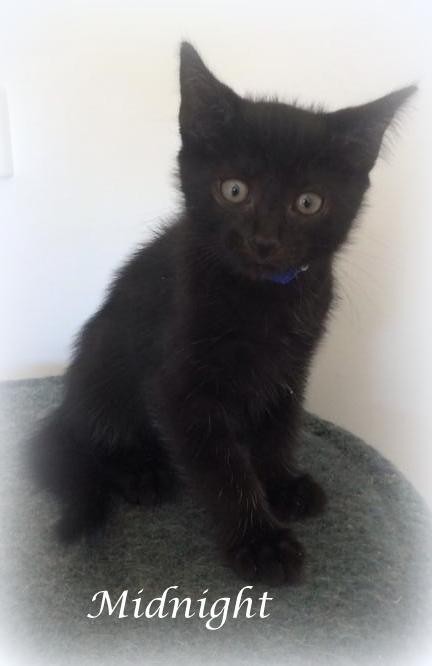 Midnight is a sweet, easy going kitten who gets on well with other cats and dogs. He would make a wonderful addition to anyone who is looking to add a 'furever friend' to their family. Midnight's mummy Suzie (who is also looking for a home to call her own) came to us heavily pregnant and gave birth to five beautiful little babies - Nutmeg, Midnight, Marbles, Leia and Chocolate.