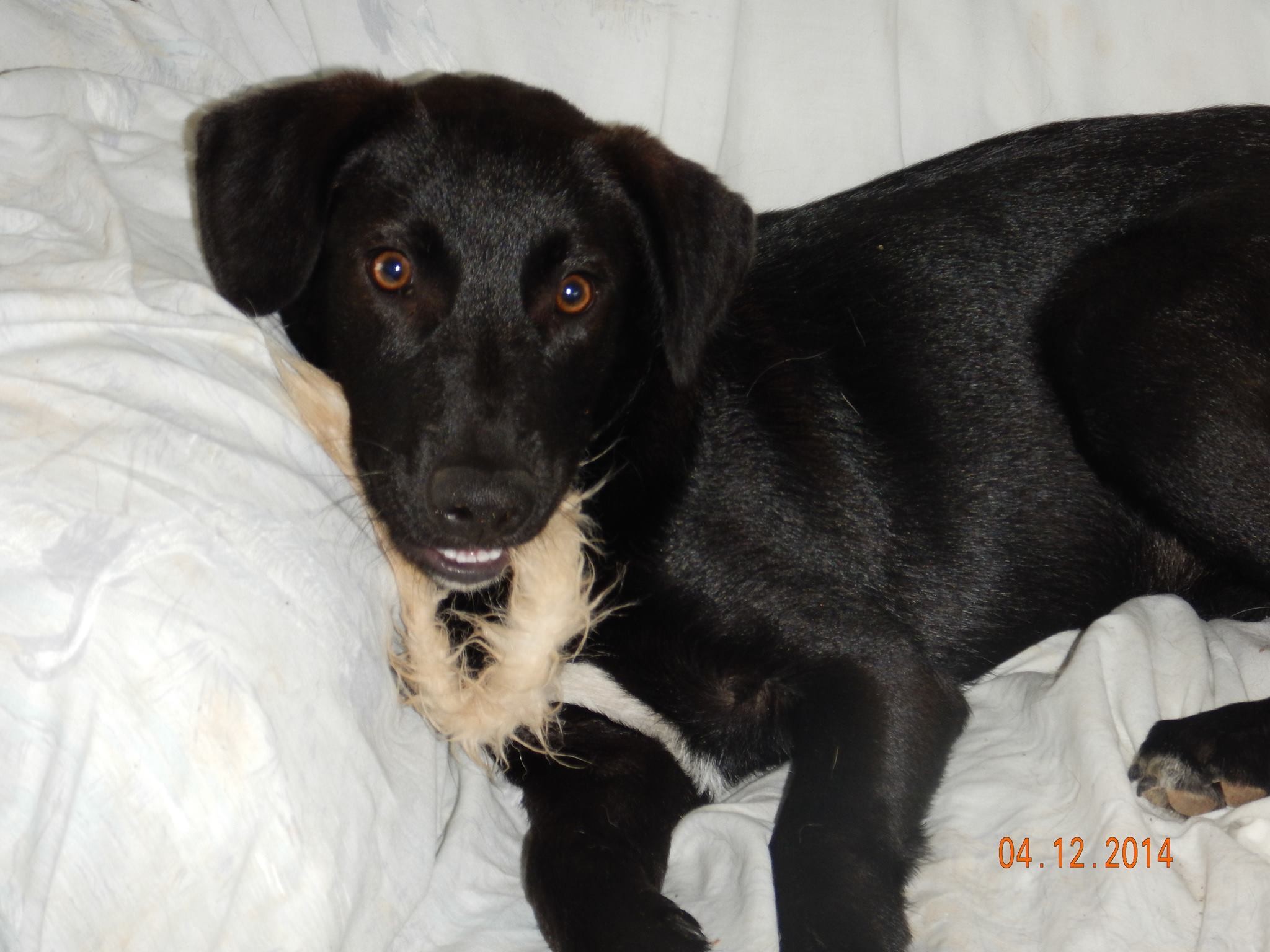 Onyx is a bright, happy puppy boy perfectly ready to romp through the holiday season with you and yours. He's a happy wag of fun and good things. He loves to play with dogs of all sizes, and is just a typical bundle of young fun. With the right education such as needed by all young ones, he'll be an eager little student and blossom easily to a life-long family member.