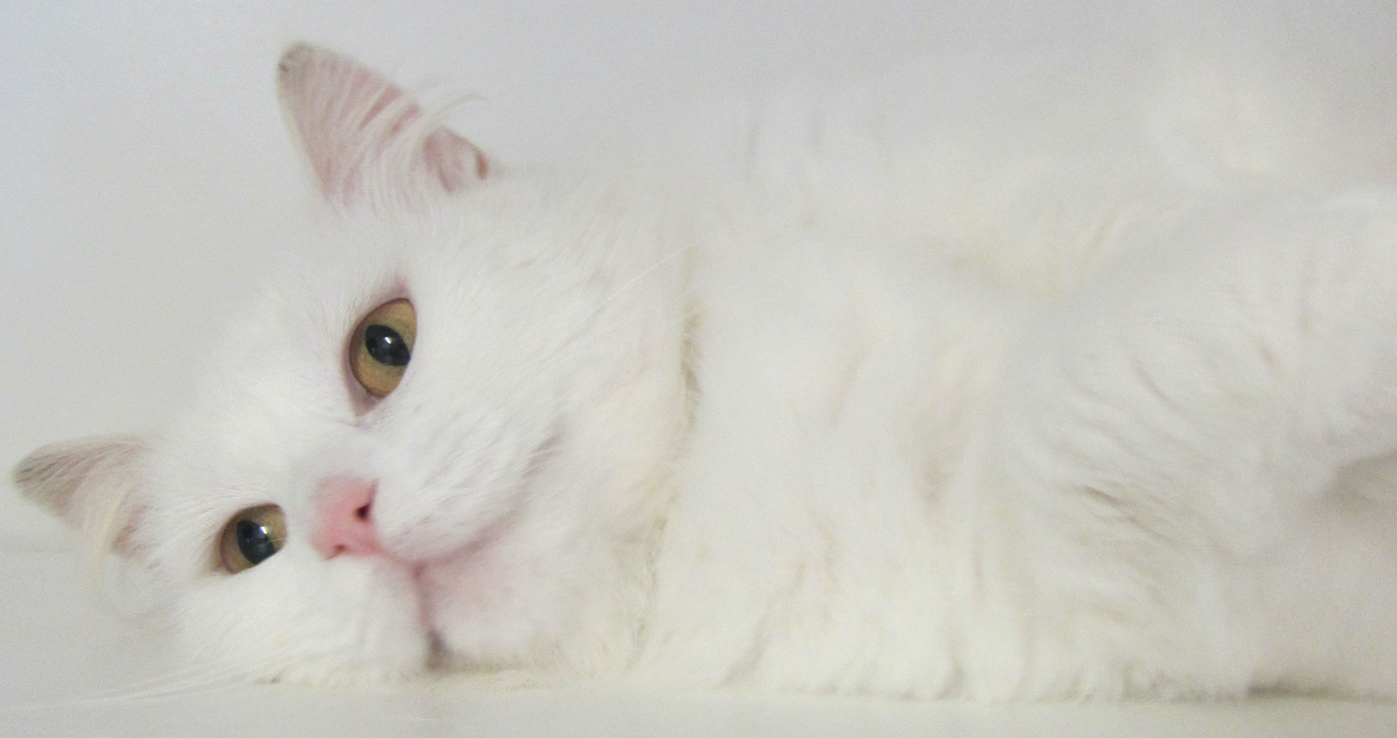 Beautifully white , fluffy and cute this gorgeous little feline has it all and the personality to match! Madeline is a lover, she loves to talk to you when she sees you, she loves any kind of attention for her human friends and most of all she loves rolling around when she is happy! Practically perfect in everyway one might say about our stunning girl Madeline. As she is a white cat she will need to be kept in doors where she is protected from the sun, she is at high risk of developing skin cancer to her nose, face and ears if left outside. A lovely cat waiting for a home Madeline will make the greatest companion for her new family.