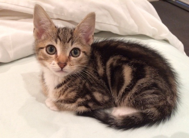 Hi, my name is Monaro and I’m a very handsome male tabby, with beautiful patterns across my fur. I’m cuddly, will snuggle on your lap and will give you smooches – but I love to play too!
