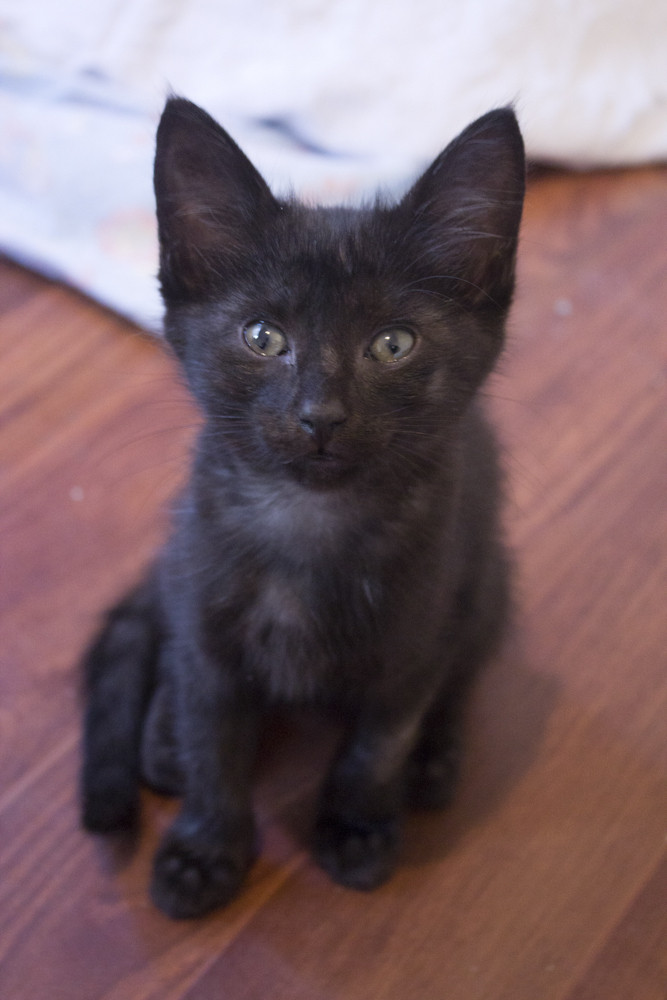 Miss X is a gorgeous little black kitten who is very adventurous and playful. She arrived into care at just a week old with her mother and litter mates.