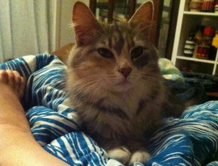 She is a purr machine, especially at bed time. She's quite a confident cat and takes everything in her stride.