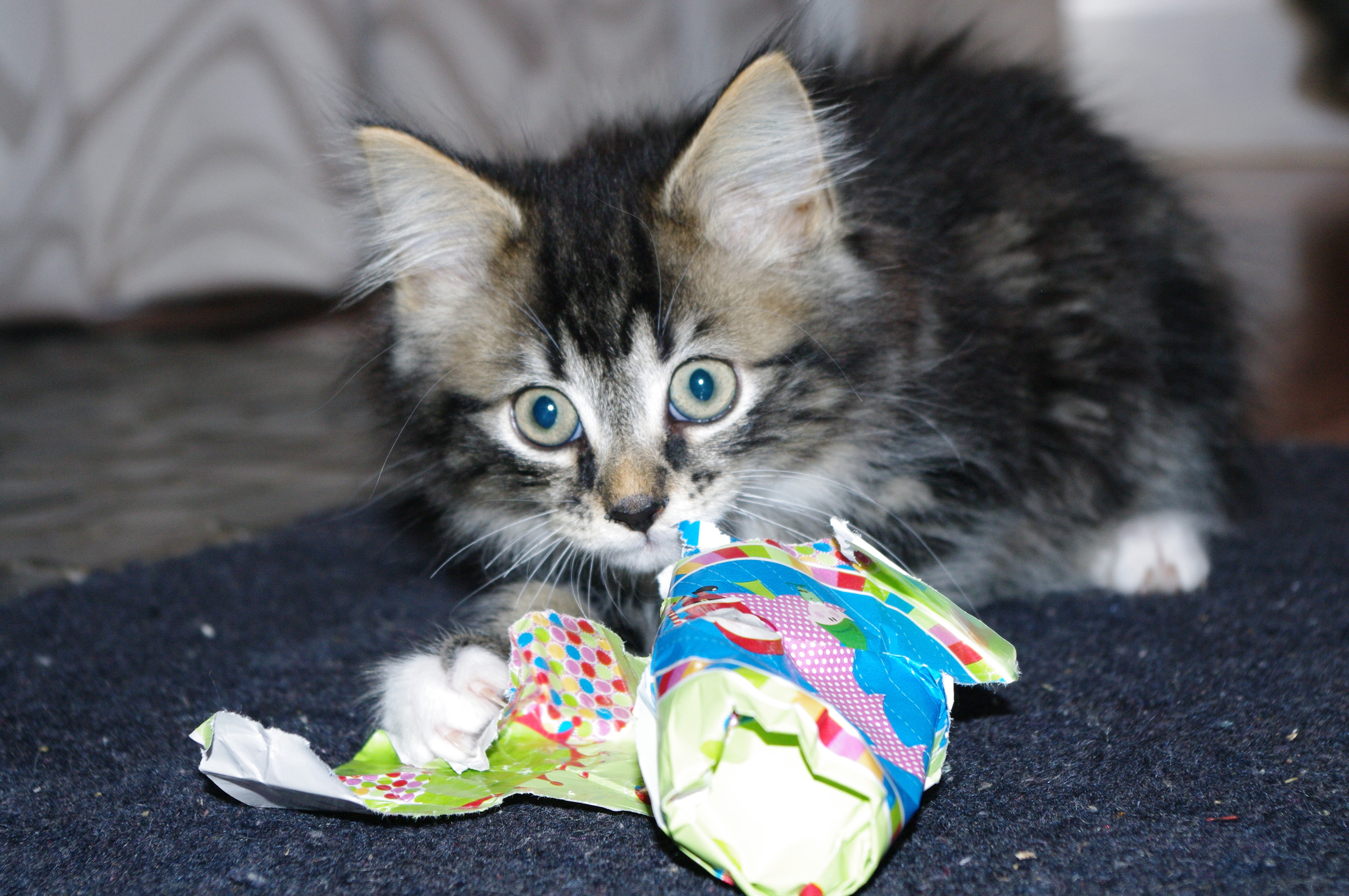 Violet is a lovely black tabby kitten, she is 10 weeks old and is ready for her new home. She enjoys playing with other kittens, a piece of wool or even a hair band. Violet is a little shy around people, but does enjoy a pat and cuddle.