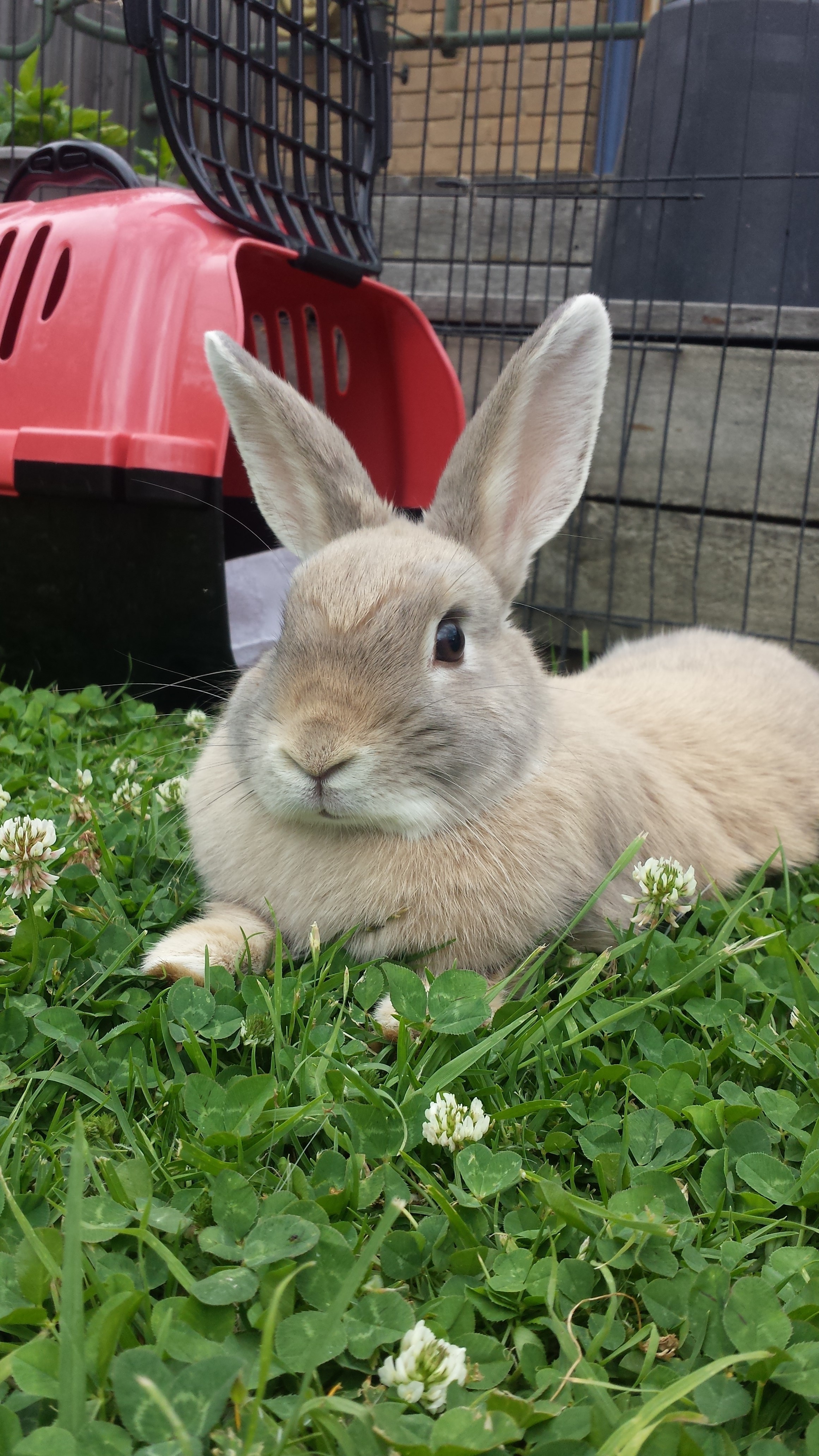 Ruby is a stunning rabbit. Very sweet and craves attention. Whenever we walk past she jumps up for pats and especially likes cheek rubs and head scratches, teeth purring non stop!