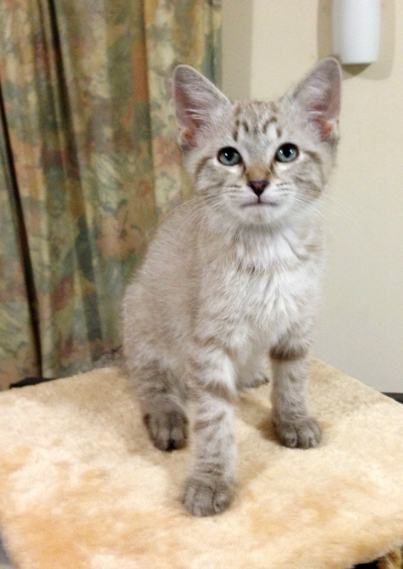 Porridge is one of the most stunning kittens we've ever had come into care! We are unsure of his breed mix, but based on other rescues from the area, and the look of the rest of his litter, we believe him to be a mix of Ragdoll and possibly Abyssinian or Australian Mist. Whatever the mix, Porridge is an unusual and striking looking boy!