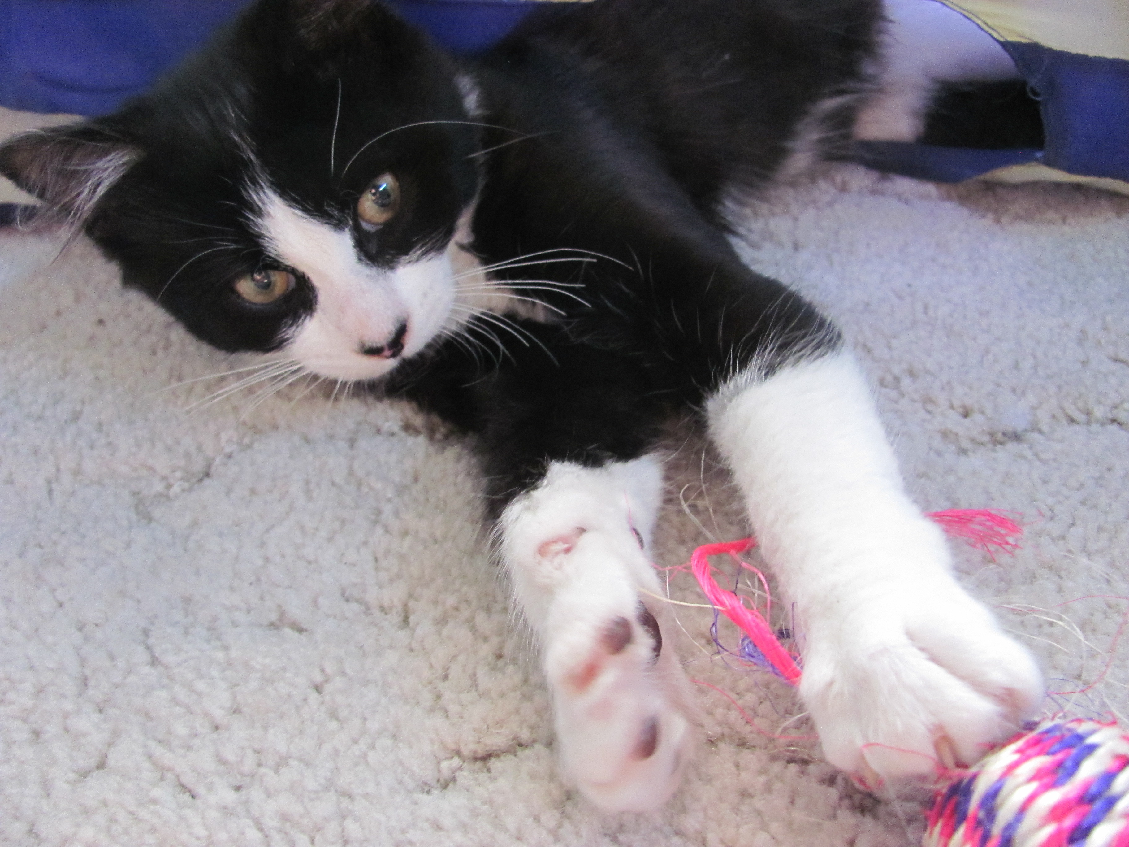 He's a pretty vocal boy and will miaow for your attention. He loves to play and explore. He is a hearty eater and kitty litter trained as well.