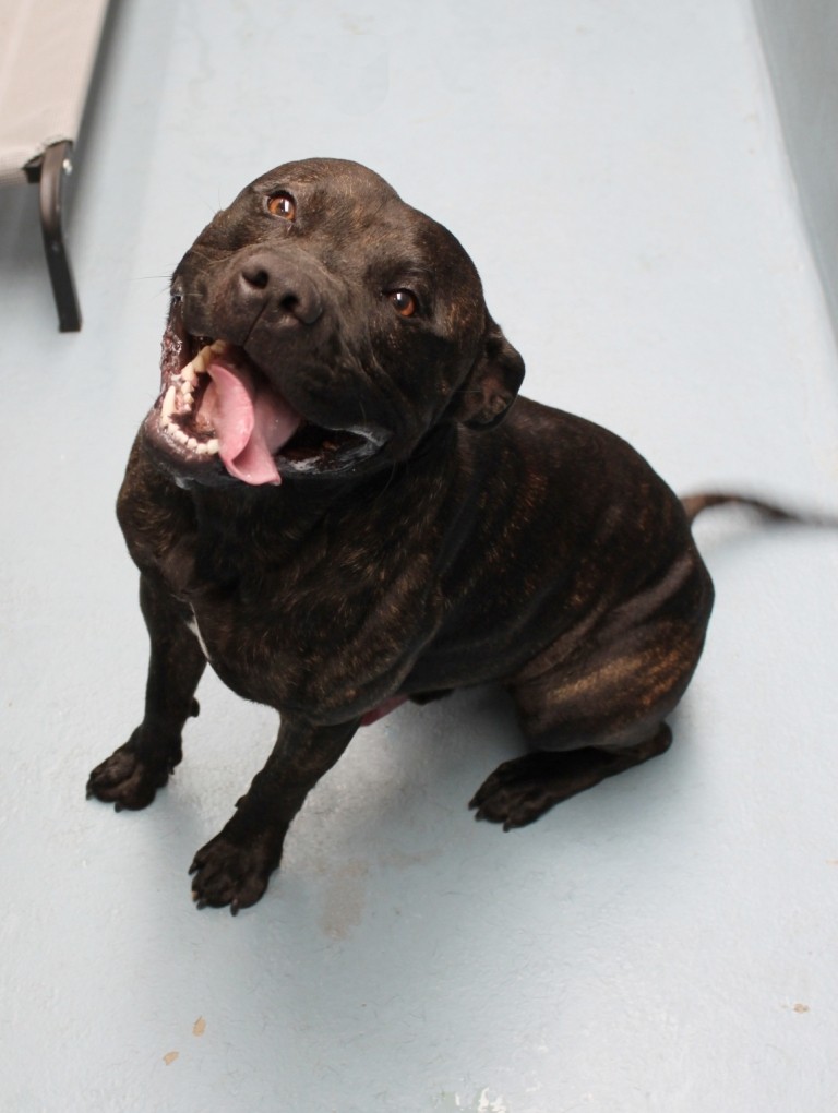 Beau is a beautiful English Staffy and a lovely young man. He is very friendly and loves people, also great with kids. He isn't concerned about the dogs kennelled around him. Beau will need a home where his owner is home a lot and will need exercise daily to burn up energy. He will require high, secure fencing. Beau will be available for adoption after January 24 unless he is reclaimed by his owner before that date.