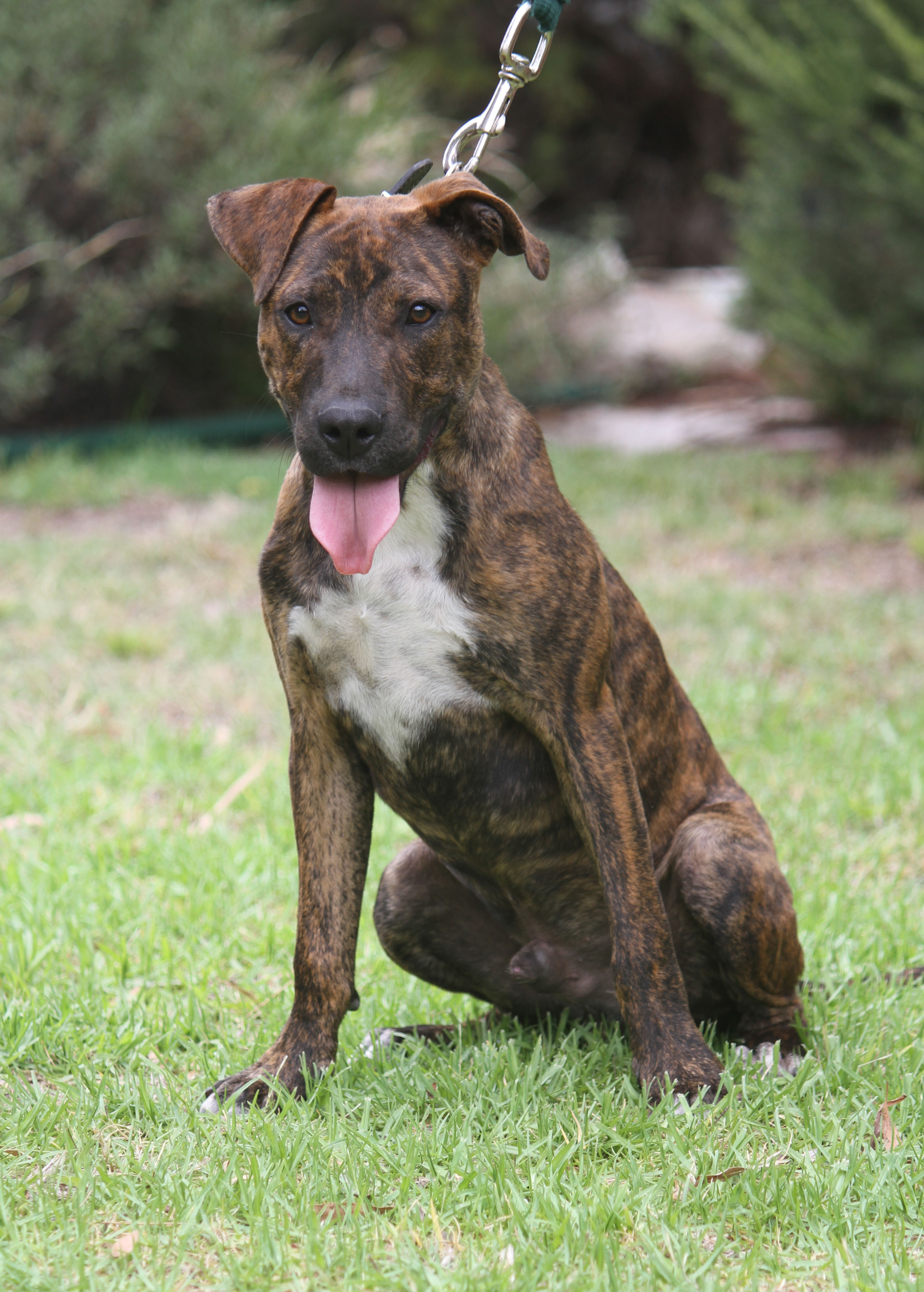We think he is a bit of a Heinz Variety with staffy and another unknown breed.