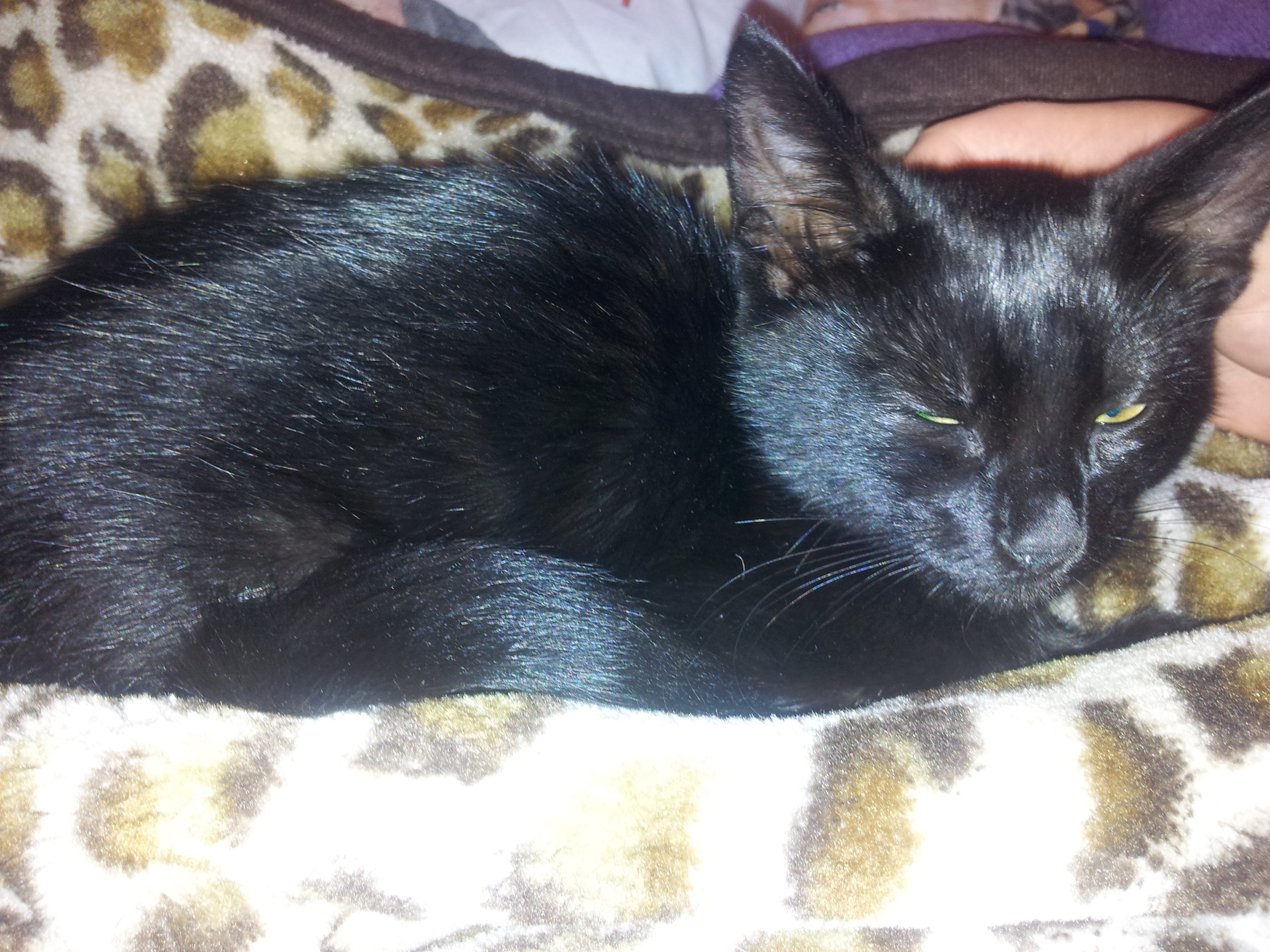 Most people aren't fond of black cats due to superstition but please, don't let superstition stop you from giving me a home. I will love you if you give me the chance.