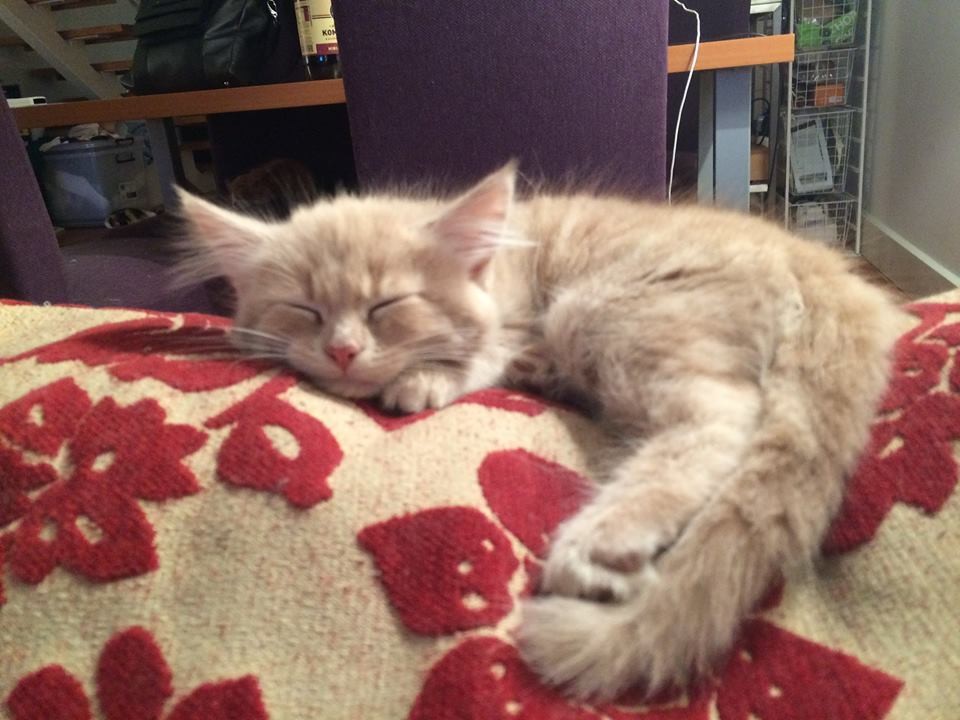 He is independent but affectionate, he loves playing with his brothers and his toys. If you give him a gentle pat, he’ll turn into a purring machine. He will tolerate a cuddle, but he’d be rather be playing around. He enjoys hanging out with humans and falling asleep on the couch while his humans watch TV.